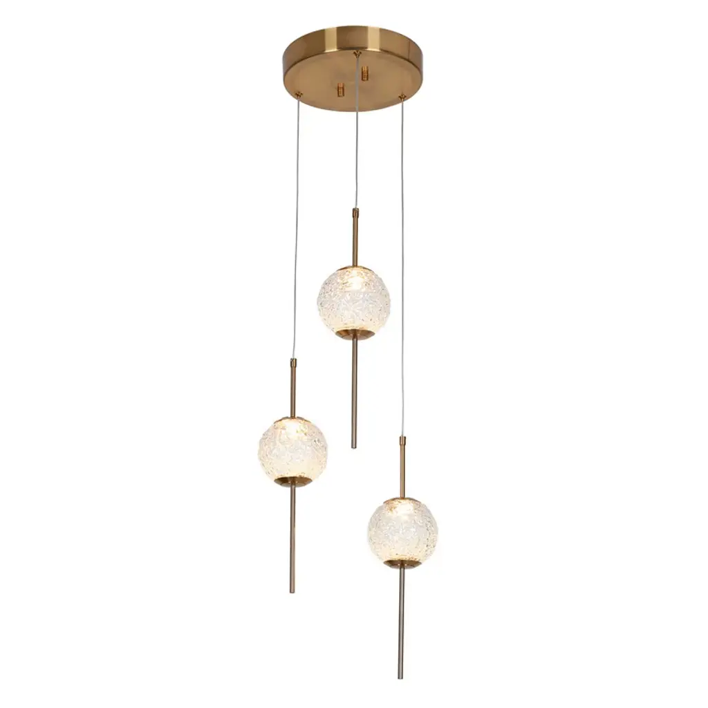 ARCTIC 3 pendant light offers a harmonious combination of style and functionality. Its structure of three glass shades and warm brass finish creates an impressive look. This fits well into both contemporary and traditional interiors. The light effectively illuminates the space. It serves as a central decorative element, enhancing any room’s appearance.Bulb: 1 x E27, max 40 W (bulb not included) Cord length: 3 m (adjustable) Hook attachment Voltage Compatibilty: 230V/50Hz + 110V/60Hz