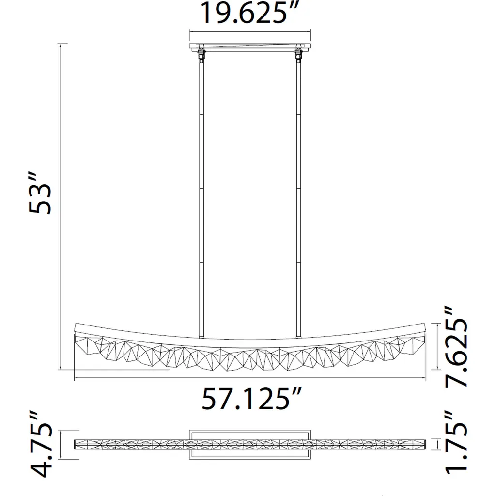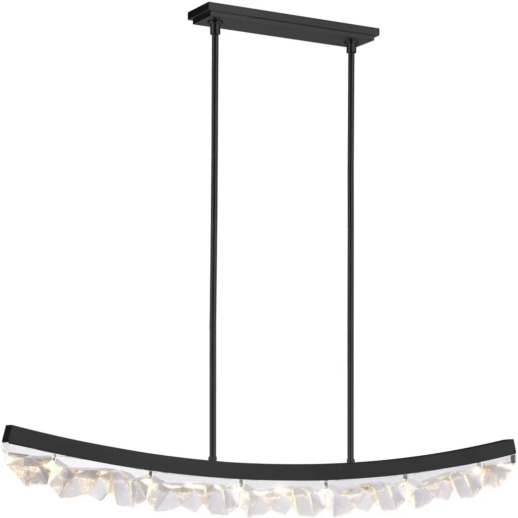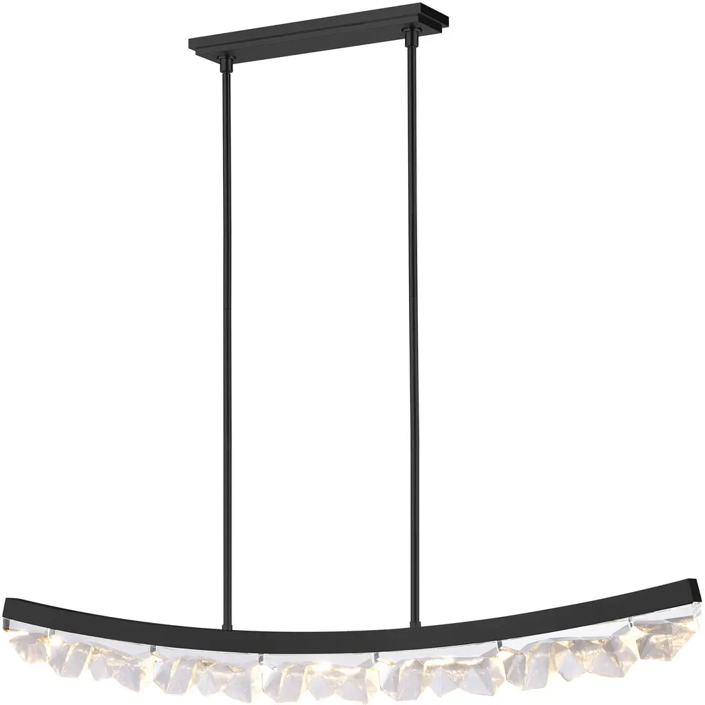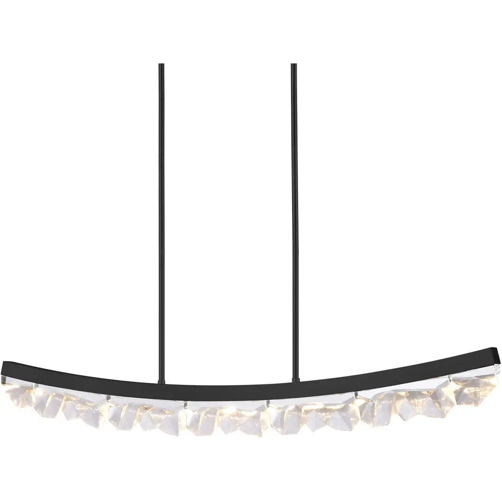 LED 57" Linear Crystal Pendant with unique sleek curved fire polished crystals from end to end. Heavy gauged refined metal with our sleek satin brushed black finish. Integrated Replaceable LED with 3CCT 3000K, 3500K and 4000K.