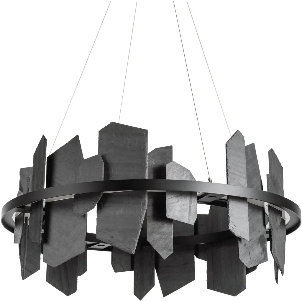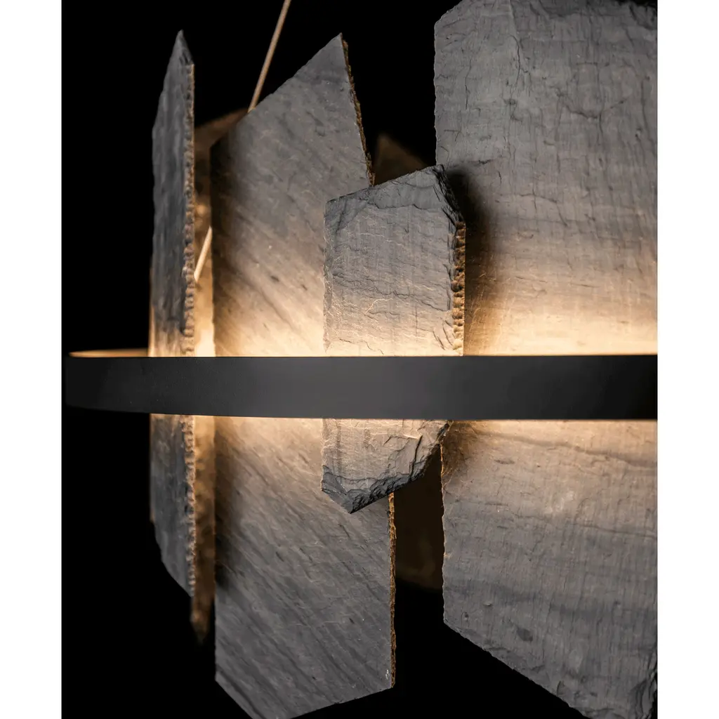 Mixed materials are not only on-trend, but show both the organic nature of slate from a nearby Vermont quarry and the metalwork of skilled Vermont artisans. Illuminated by our LED light-guide platform, the Ardesia is the apex of where technology meets nature. A natural element, slate has slight variations in size, color and texture. Also available as a large, linear pendant.