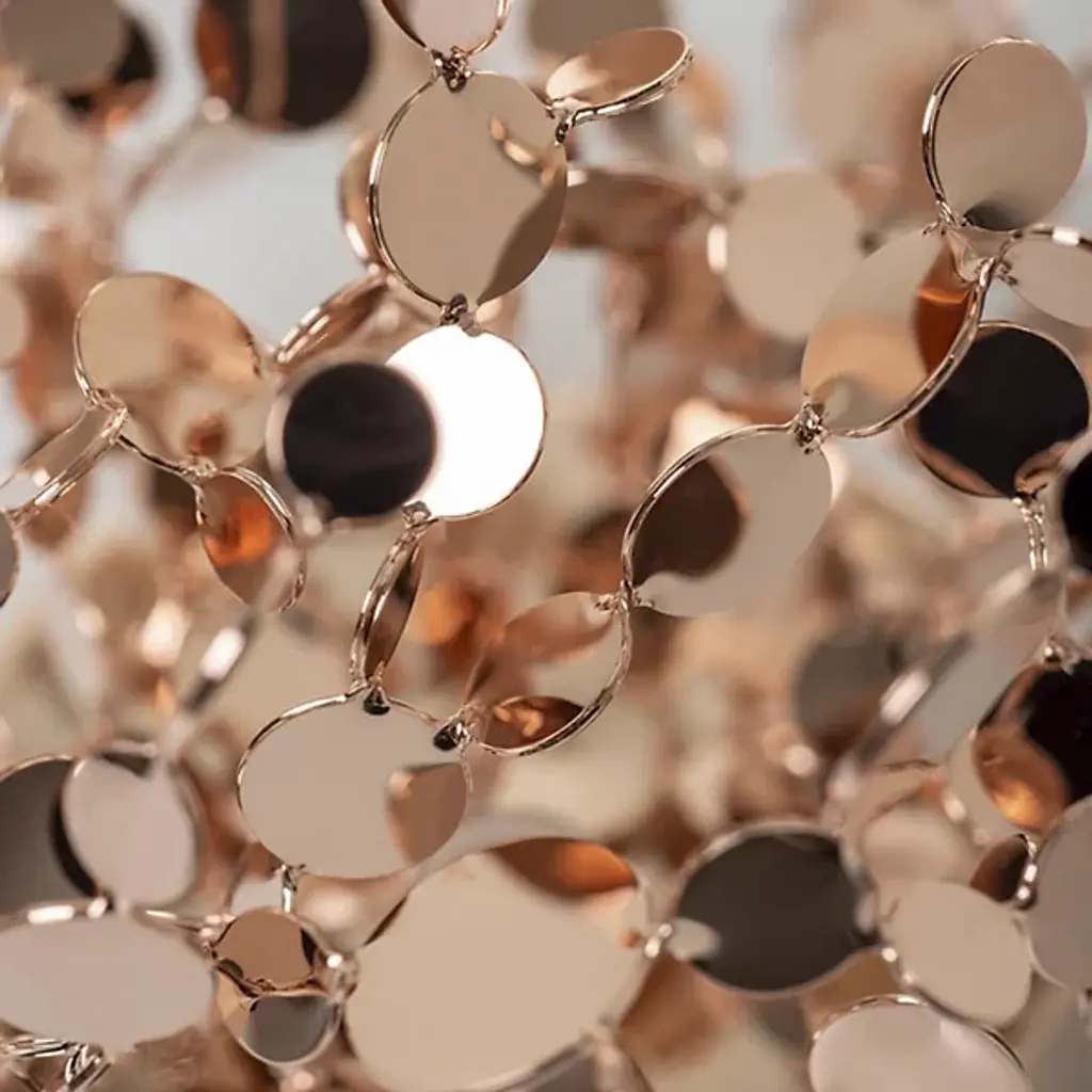 Argent Mon Bijou LED Mini Pendant from Terzani intrigues with a cloudlike structure of dozens of small intersecting discs arranged in a stylized sphere floating around the central lamping. Originally designed by Dodo Arslan, its fine Italian craftsmanship uses contemporary elements, inspired by Rabanne’s fashion, Verner Panton’s artistry, and the marvelous mirrors of Julio Le Parc. The beauty of the Italian seaside that inspired it is on full display, as the rich metal finish reflects the light within and the environment around it, accentuating any interior with reflected radiance and rounded shadows.