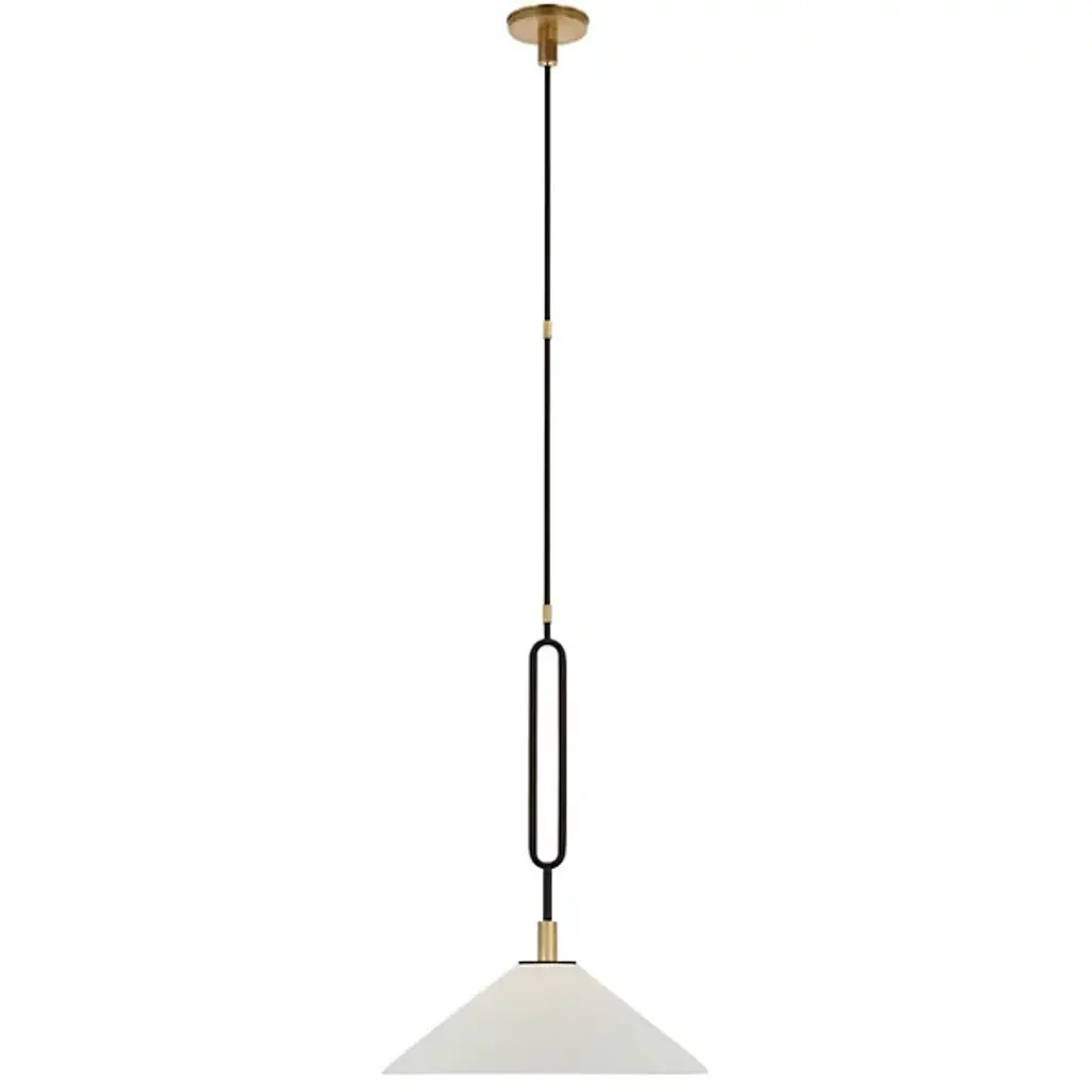 Simplicity meets substance in the Argo Pendant from Visual Comfort Signature. With a modest structure and a matte porcelain shade, these pendants are linked together by a sleek, modern link available in various metal finishes. It's versatile enough to accentuate a kitchen island or hallway or even serve as a stylish pair on either side of a bed, bathroom mirror, or vanity, adding a touch of contemporary elegance to any space.