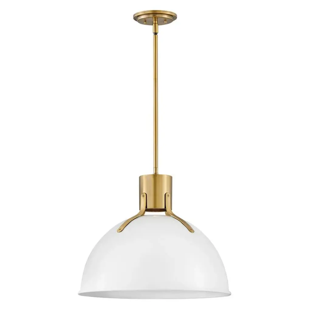Argo is brilliantly basic in design but has all the right details to make it shine. The smooth lines of the Satin Black or Polished White dome have a vintage, industrial feel but modern updates, including LED lamping, make Argo contemporary. Heavy Lacquered Brass straps and rivets secure the dome to the cap in this clean and stylish profile. Features