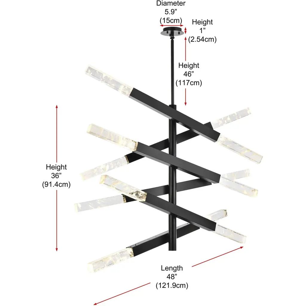 Go bold with the 6-bar pendant light, a true centerpiece of modern style and artistry. Featuring solid clear crystal bars with ethereal cloud-like details, this fixture refracts light into a dazzling show of brilliance, creating a dynamic interplay of form and illumination. Ethereal white clouds float gracefully within the crystal, each one a unique formation shaped over millennia. These wispy inclusions create a dreamlike landscape, evoking a sense of serenity and wonder. The six adjustable arms allow you to customize the angles, offering endless possibilities for creative configurations. Perfect for large spaces like grand dining rooms, open-plan living areas, or impressive office settings, the 6-bar design commands attention and elevates the ambiance. Dimmable 6.5W light bulbs (3000K, 480 lumens) are included, along with a matching canopy to complete the look.