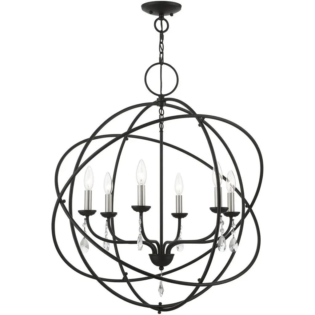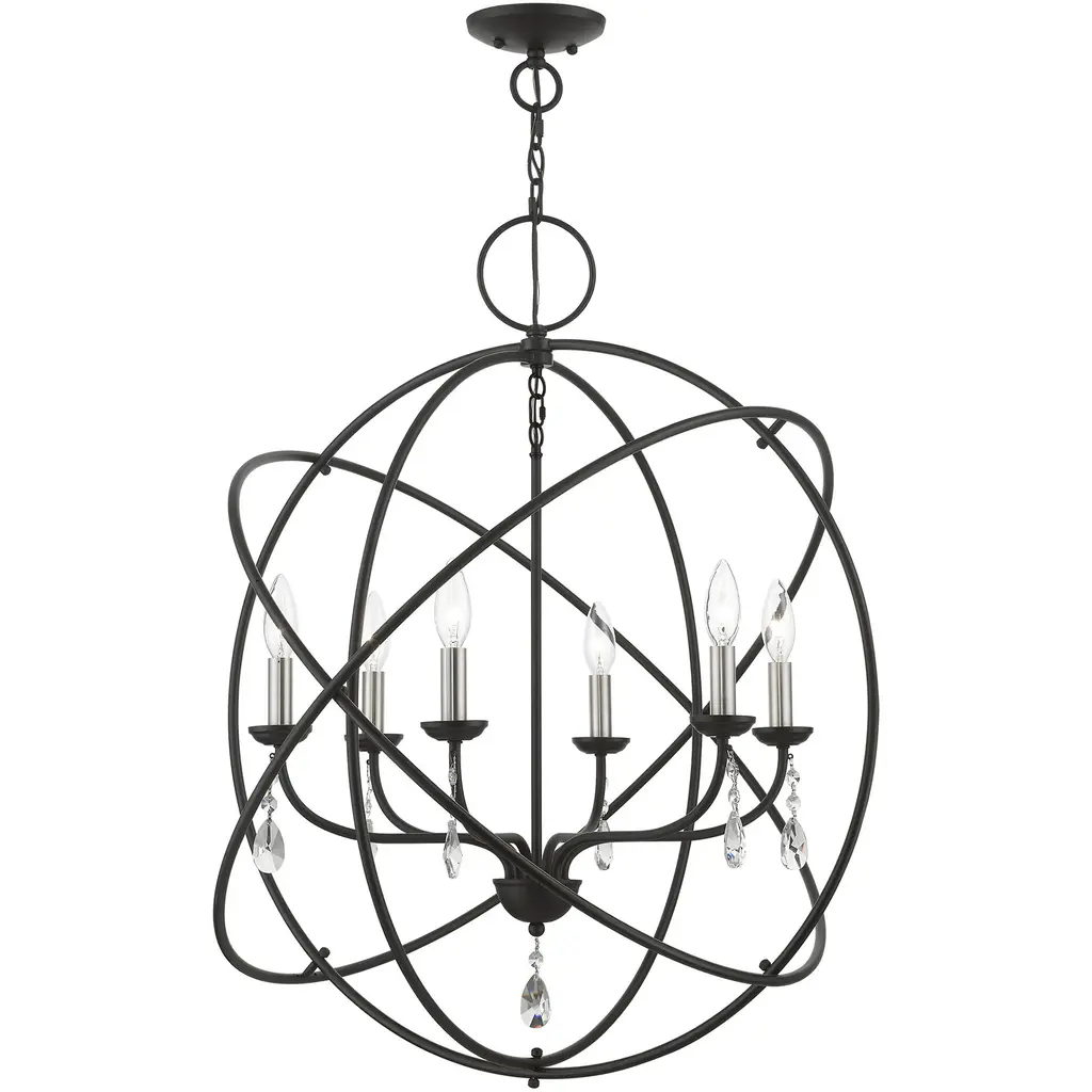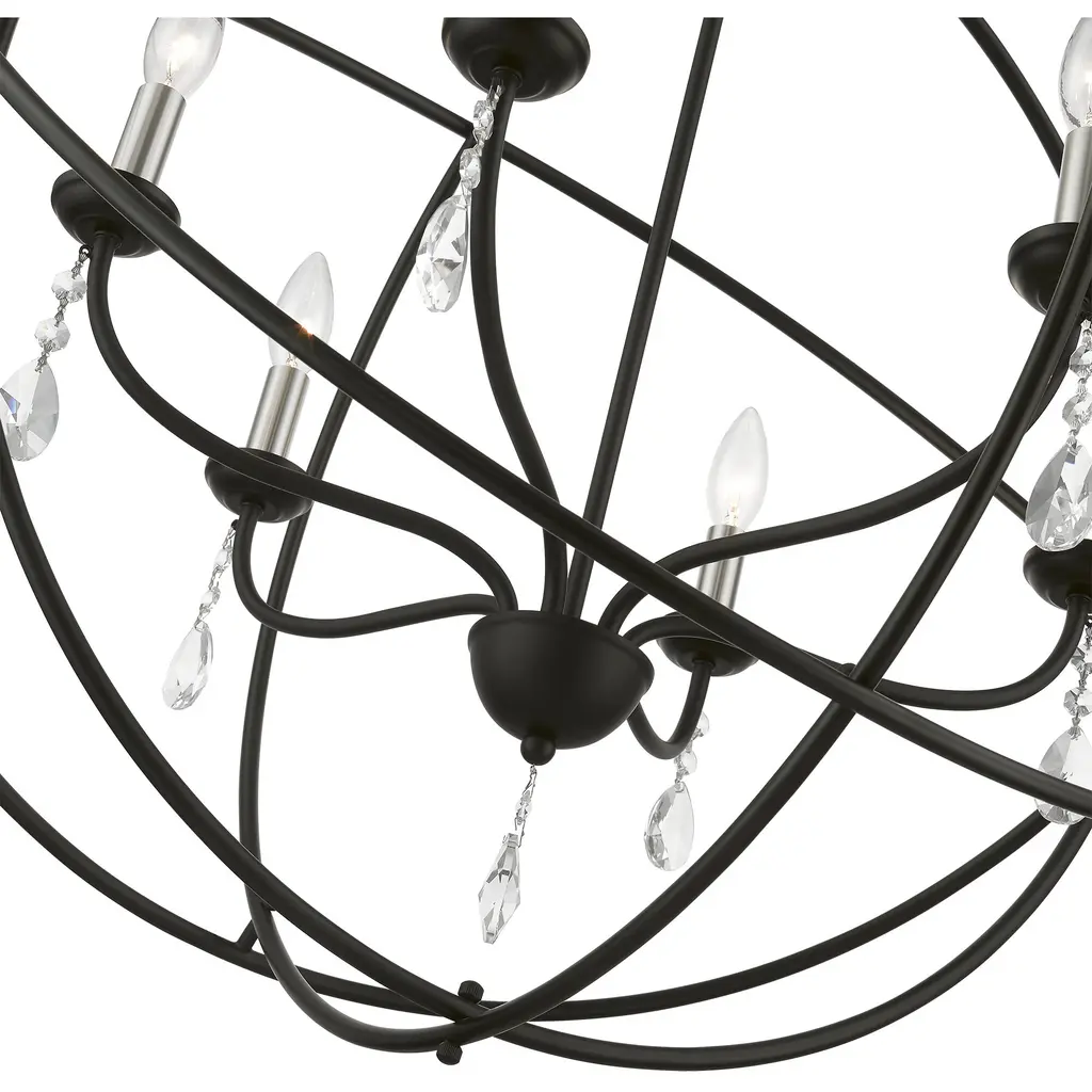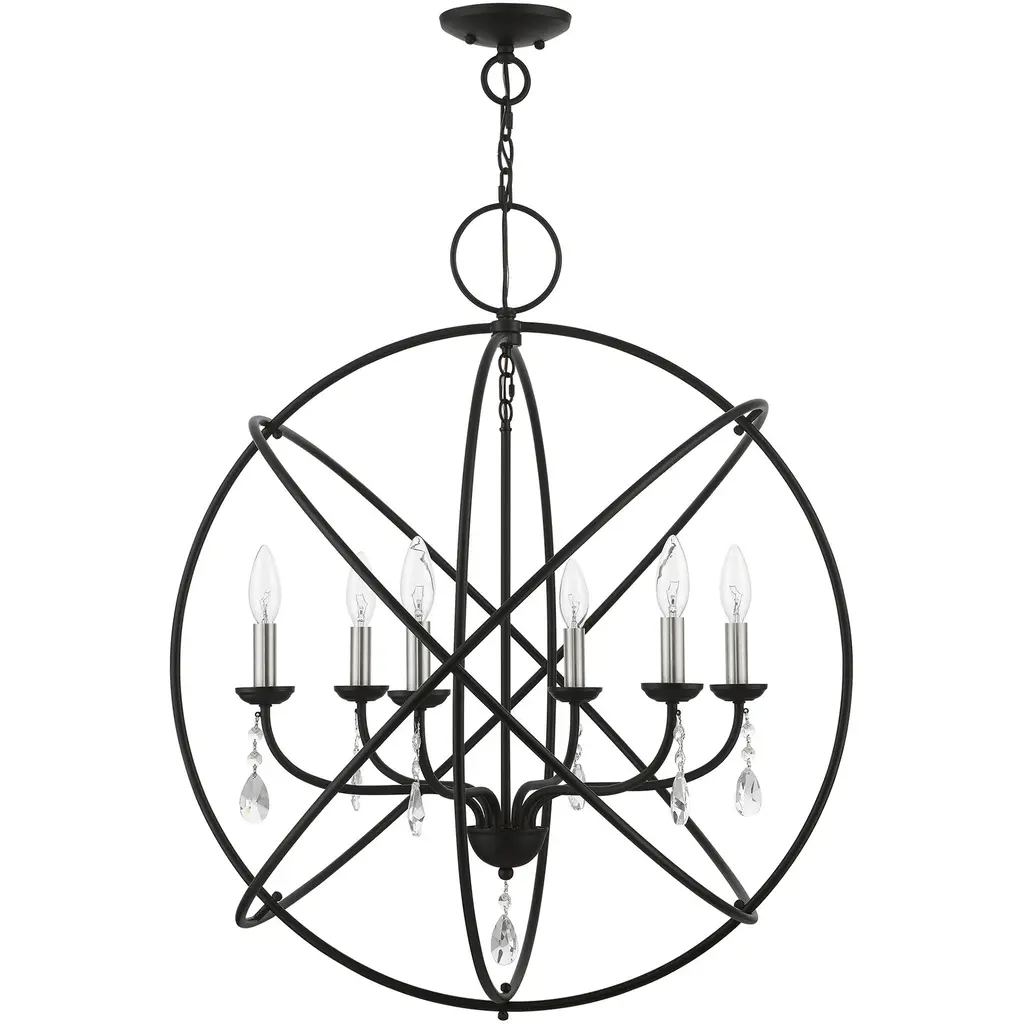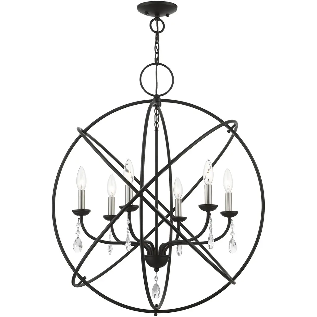6 Light Black with Brushed Nickel Finish Candles Globe Pendant Chandelier