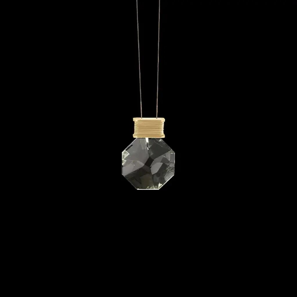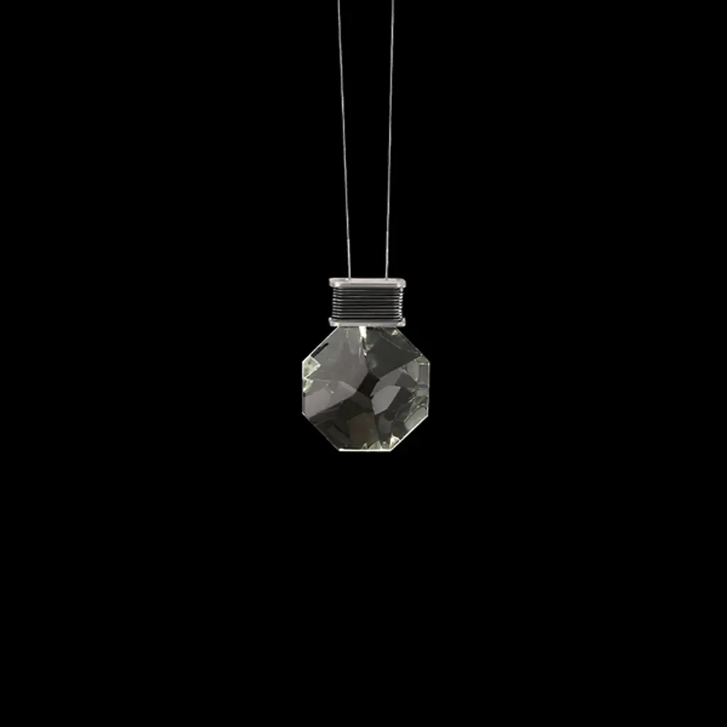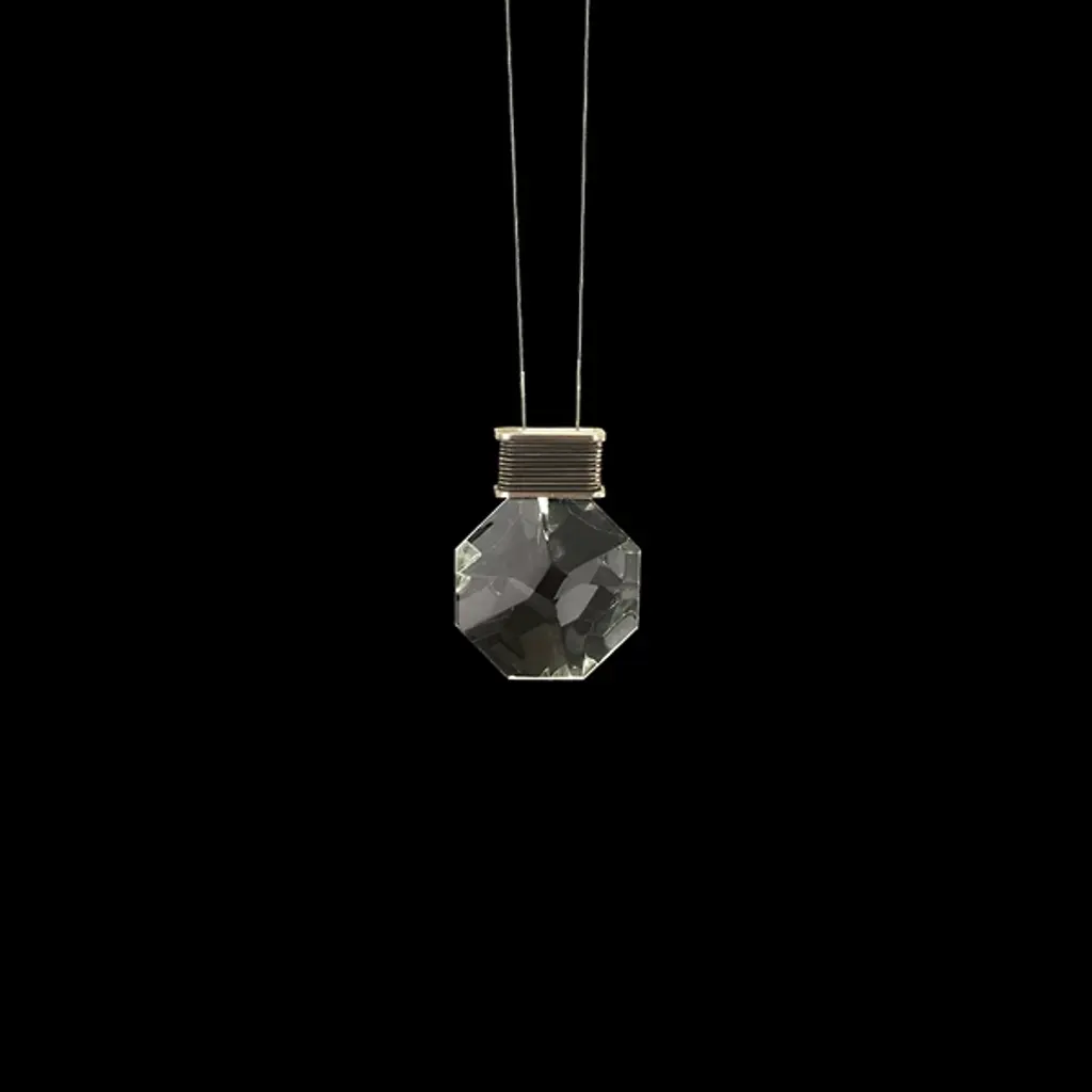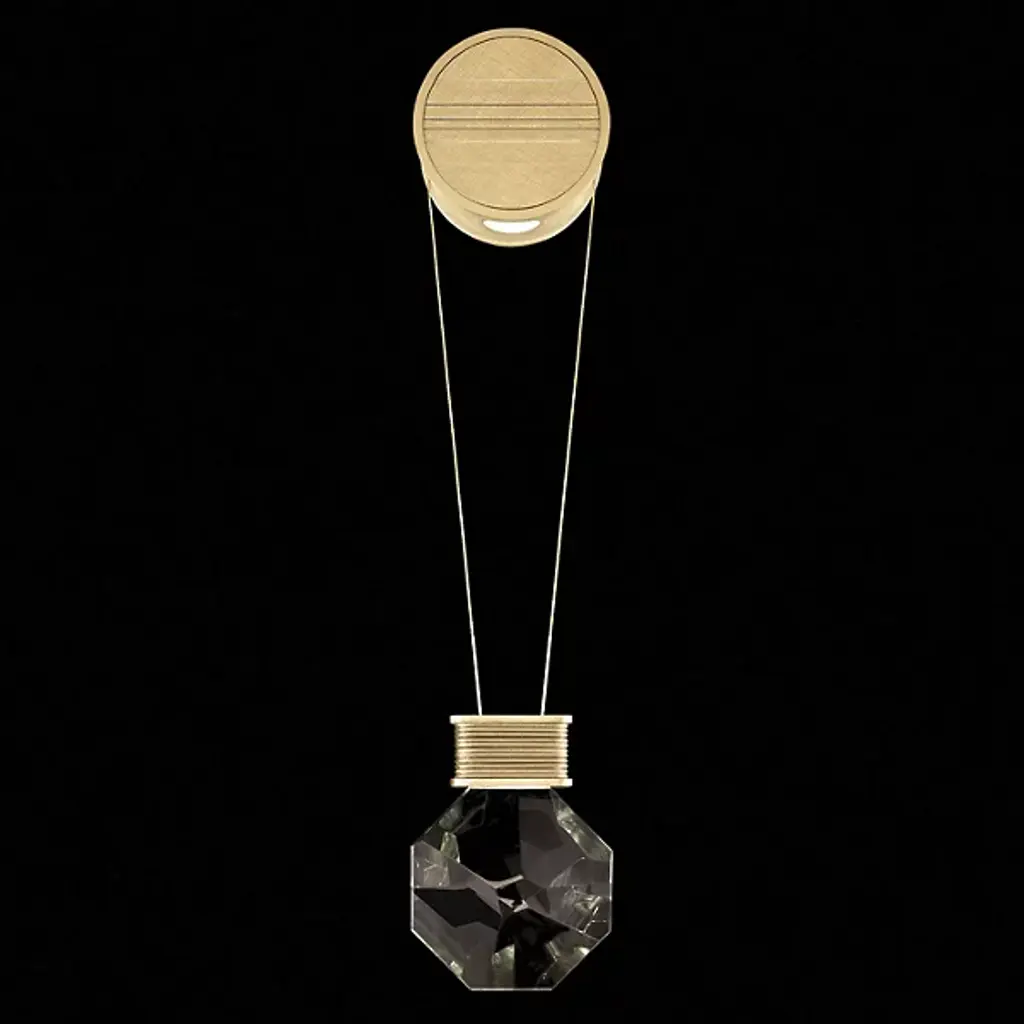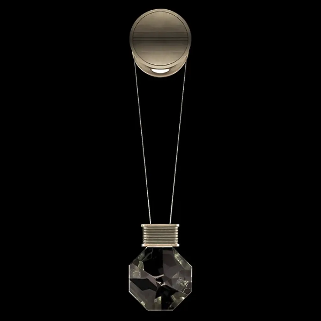 Skillfully designed, the Aria Octagon LED Mini Pendant from Fine Art Handcrafted Lighting hangs gracefully from a circular wall plate, supported by a slender yet robust cable, offering adjustable height reminiscent of the sophistication of necklace charms. Each detail is meticulously fashioned, showcasing a small banded accent adorned with an opulent faceted optic crystal charm that gleams like precious gems, captivating attention with its radiant allure. Whether you desire the soft, reflective glow of light streaming through the crystal or the functional illumination it provides, the integrated LED lights cater to your lighting preferences with elegant aplomb. Combining elements of Artisanal Modern and Transitional styles, this pendant brings an elegant touch to any space.
