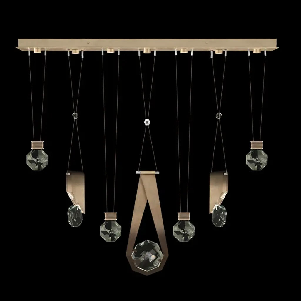 Five-drop linear pendant inspired by the sophistication and versatility of necklace charms. This collection empowers you to curate your unique piece with its five exquisite finishes and four distinct charm designs meticulously crafted using opulent facet