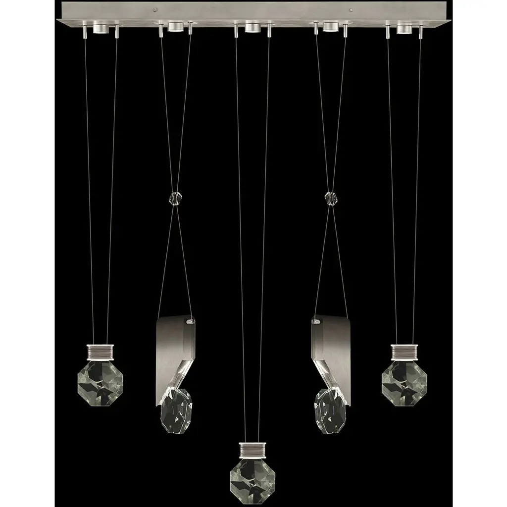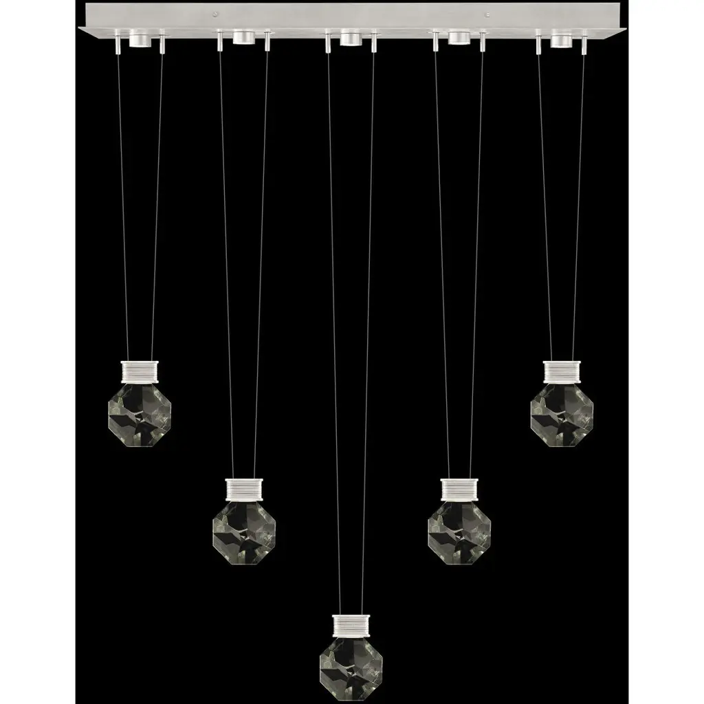 Five-drop linear pendant inspired by the sophistication and versatility of necklace charms. This collection empowers you to curate your unique piece with its five exquisite finishes and four distinct charm designs meticulously crafted using opulent facet
