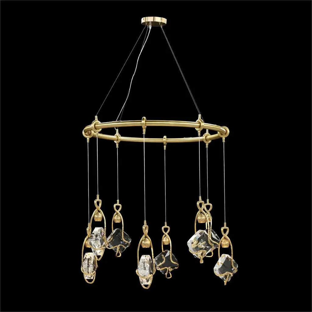 Five-drop linear pendant inspired by the sophistication and versatility of necklace charms. This collection empowers you to curate your unique piece with its five exquisite finishes and four distinct charm designs meticulously crafted using opulent facet