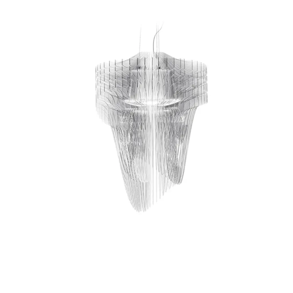 Zaha Hadid’s luminous architecture is visionary, fluid and dynamic, infusing the revolutionary and iconic semantics of the celebrated architect into domestic and public interiors; the result is the harmonization of beings and their surrounding spaces. From the new metallized Gold, the original version with shaded black edges, to the ethereal transparent, polycarbonate versions, Hadid’s masterpieces consist of 50 "arms", each diverse from the others, radiating around a voluminous LED source. Features