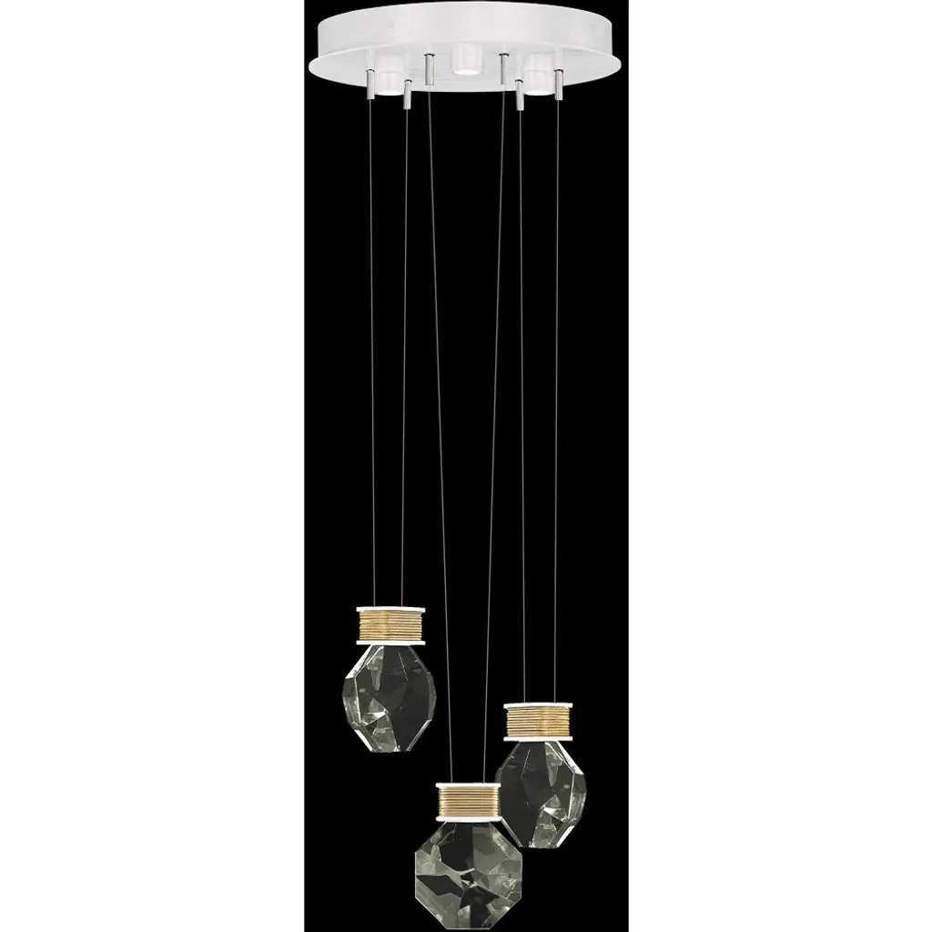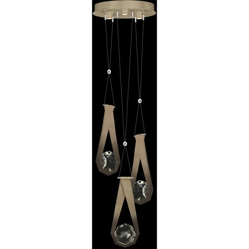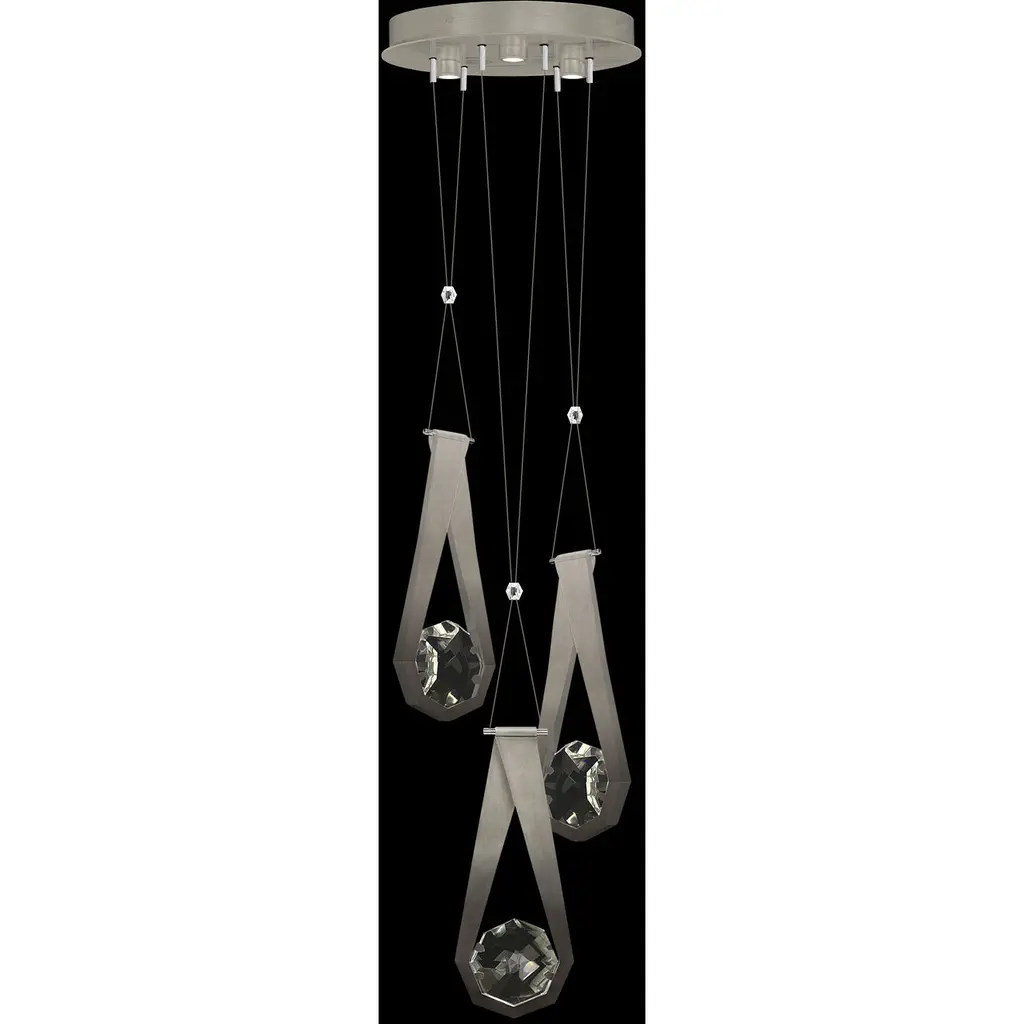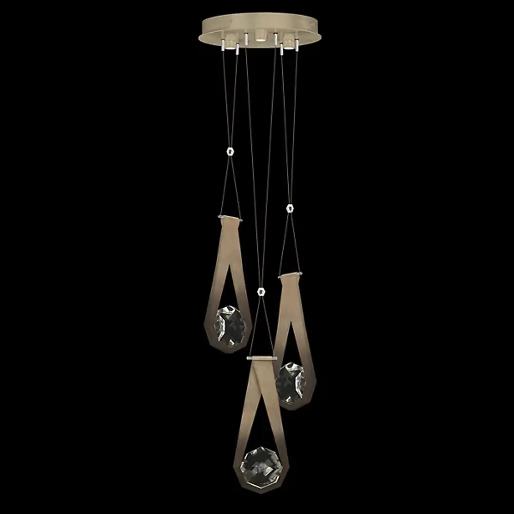 Drawing inspiration from the elegance and adaptability of necklace charms, the Aria Teardrop Multi Light LED Pendant by Fine Art Handcrafted Lighting presents a three-drop linear design suspended gracefully from a stepped circular canopy. Each drop features geometric metal accents resembling stylized teardrops, with a sparkling crystal at their centers, casting a radiant glow akin to precious gems. Whether seeking the soft, reflective play of light off the crystal or the functional brightness of the integrated LED lamping, this pendant brings your vision to life with sophistication and style. Combining Artisanal Modern and Transitional elements adds a contemporary flair to any interior space.