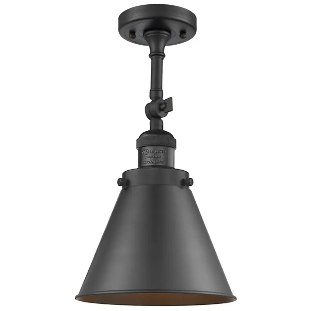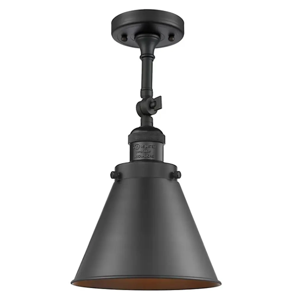Solid, industrial-inspired sophistication. Brighten and define the aesthetic of your home with the Arianna Wall / Semi-Flushmount from Alder & Ore. It slots in the tightest spaces with a compact heavy cast backplate. For a tailored approach to lighting, this piece offers a 180-degree adjustable joint. Right underneath, a compact lamp holder with knurled accenting and engraved details ties together the retro-industrial quality of the piece. A cone shade sits at the bottom fully wrapping its bulb. Turn it on for a soft stream of warm ambient light.