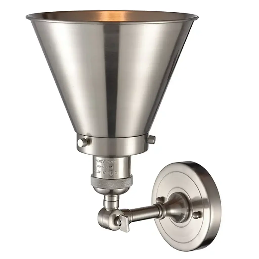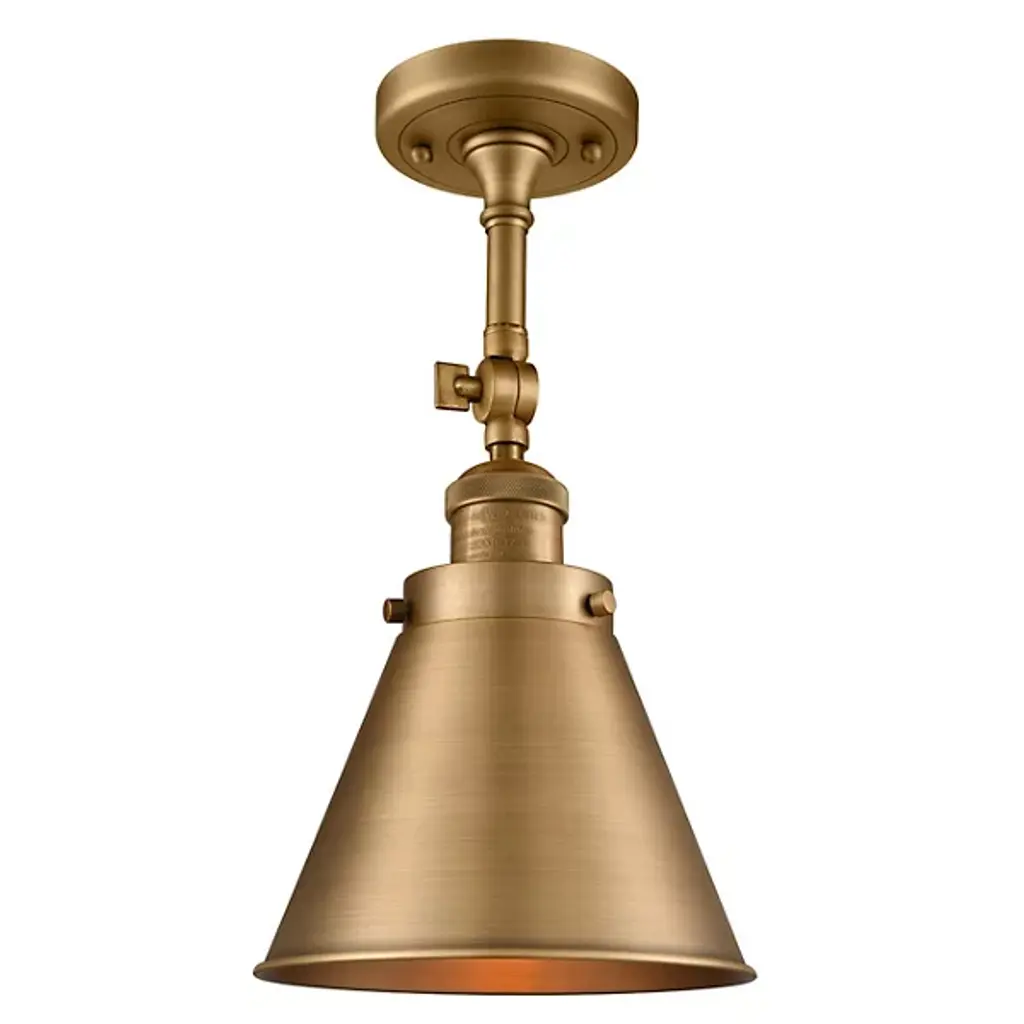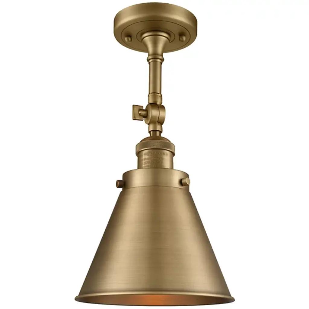 Solid, industrial-inspired sophistication. Brighten and define the aesthetic of your home with the Arianna Wall / Semi-Flushmount from Alder & Ore. It slots in the tightest spaces with a compact heavy cast backplate. For a tailored approach to lighting, this piece offers a 180-degree adjustable joint. Right underneath, a compact lamp holder with knurled accenting and engraved details ties together the retro-industrial quality of the piece. A cone shade sits at the bottom fully wrapping its bulb. Turn it on for a soft stream of warm ambient light.