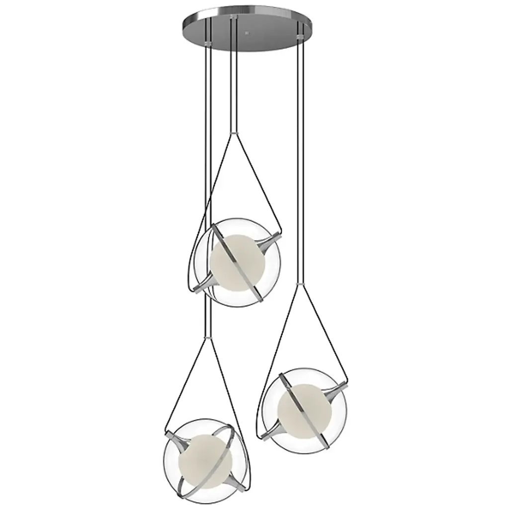 Kuzco Lighting presents the Aries LED Multi-Light Pendant. The celestial spheres of the Aries create a one-of-a-kind space that’s quite literally out of this world. This fantastic display of floating light makes a statement piece in the modern or contemporary space. The gyroscope-like spheres can also be adjusted for optimal lighting from the interior frosted glass accents.