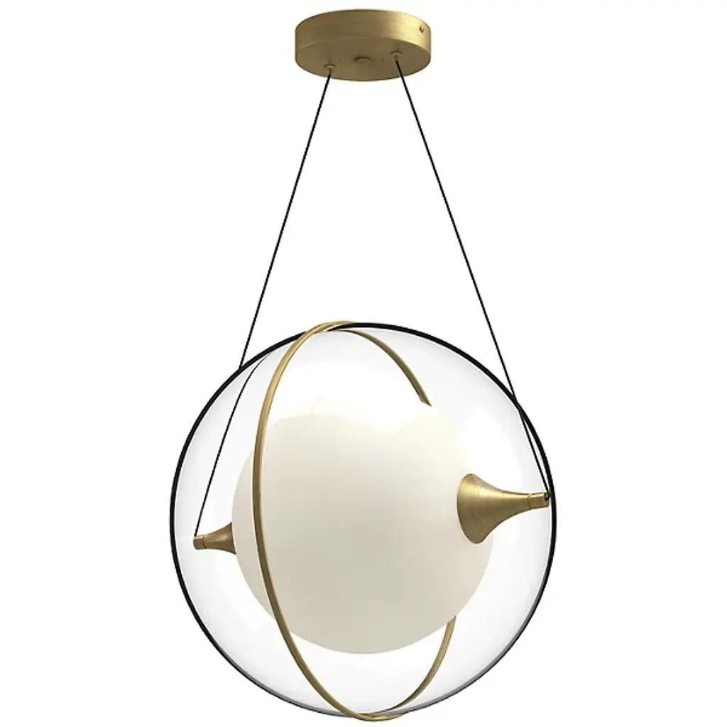 Kuzco Lighting presents the Aries Pendant. The celestial sphere creates a one-of-a-kind space that’s quite literally out of this world. The gyroscope-like Aries can also be adjusted for optimal lighting from the interior frosted glass accents. This fantastic displacement of floating light makes a superb statement piece among locales of choice.