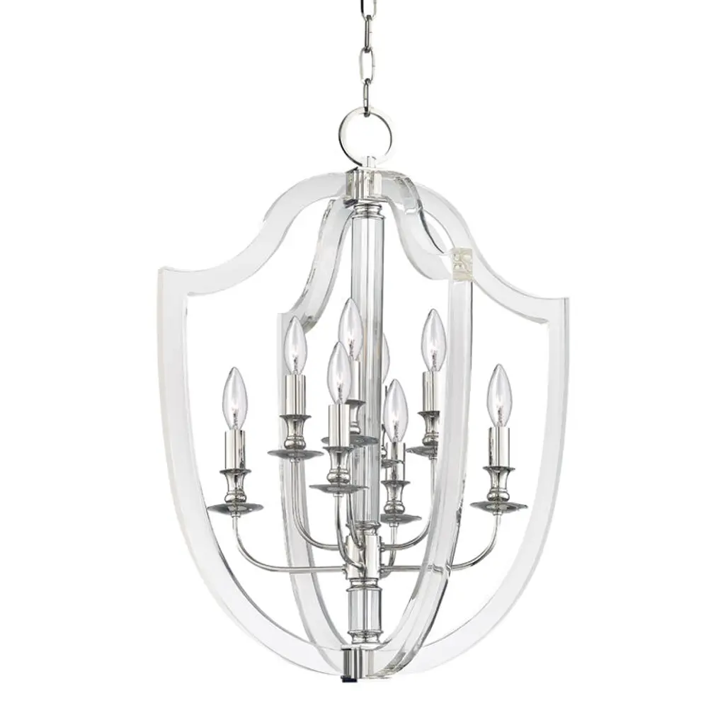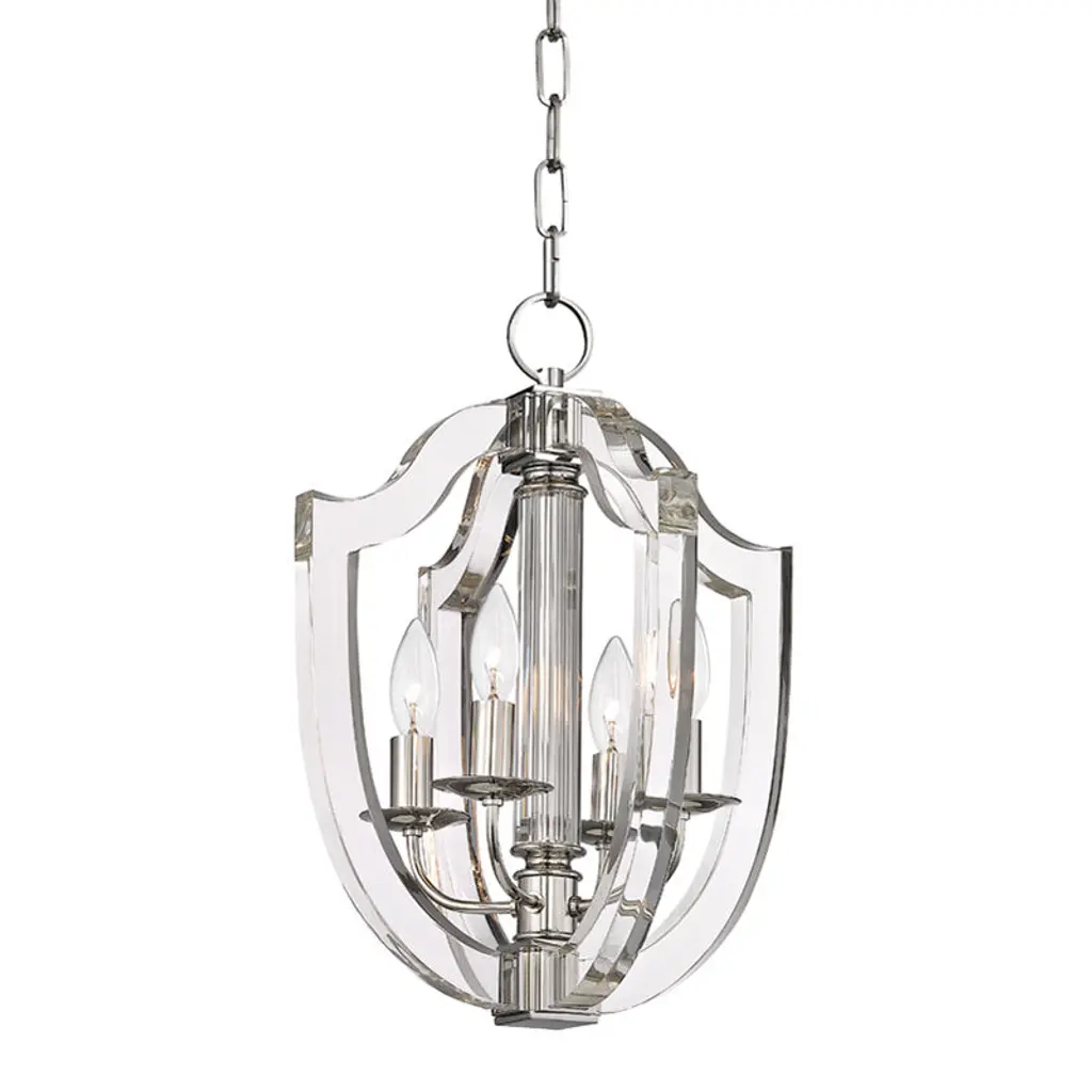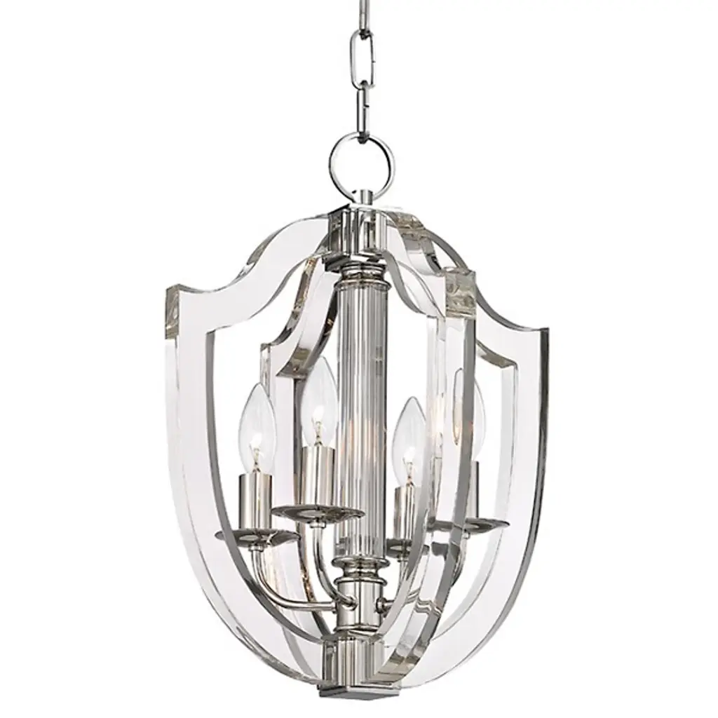An updated classic for the ages. Hudson Valley Lighting's Arietta Pendant has a sleekly designed open crest silhouette. Its Metal construction accentuates its glamorous aesthetic and highlights the luminous light sources mounted within. Laser-cut Acrylic complements the Metal and the shape of the crest in contemporary fashion. Its stunning shape and versatile form will fit right in with modern spaces and transitional homes alike. Mount it in a series in the hallway or brighten up your favorite area of the living room or bedroom with this elegant addition. It's also suitable for lighting up the kitchen or the foyer to instantly upgrade the ambiance.
