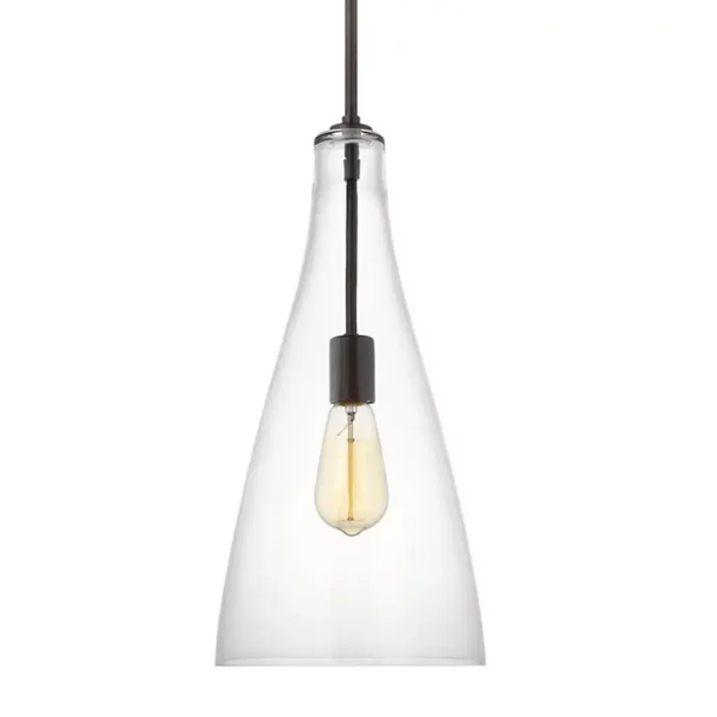 The Arilda Pendant by Visual Comfort Studio, formerly known as Sea Gull Lighting, is elegant in its simplicity. The soft, beautiful curve of the hand-blown glass shade accentuates the vintage style bulb and embodies a timeless aesthetic. The classic design complements modern and more traditional styles alike and works well on its own or in multiples, filling your home with ambient light.