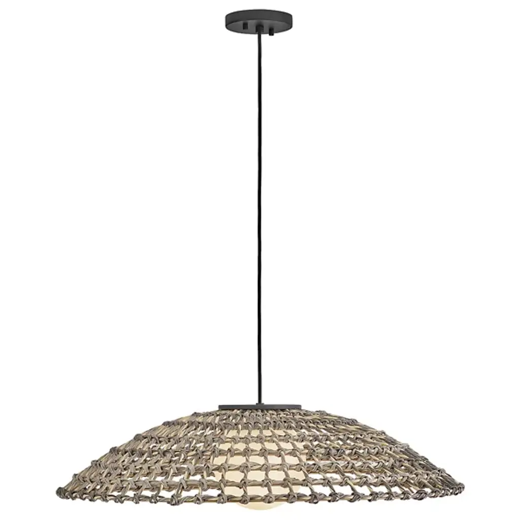 The Arlen Large Outdoor Pendant from Hinkley features a distinctive dome shape that sets it apart from typical outdoor lighting. The woven rattan exterior creates delicate shadow patterns while protecting the internal light source from direct exposure to the elements. Designed specifically for open-air environments, this suspension withstands wet conditions while maintaining its structural integrity and visual appeal. The natural material brings organic texture to modern outdoor spaces, softening hard architectural lines commonly found in exterior design. This pendant transforms outdoor dining areas into intimate gathering spaces that blur the distinction between indoor comfort and outdoor living.