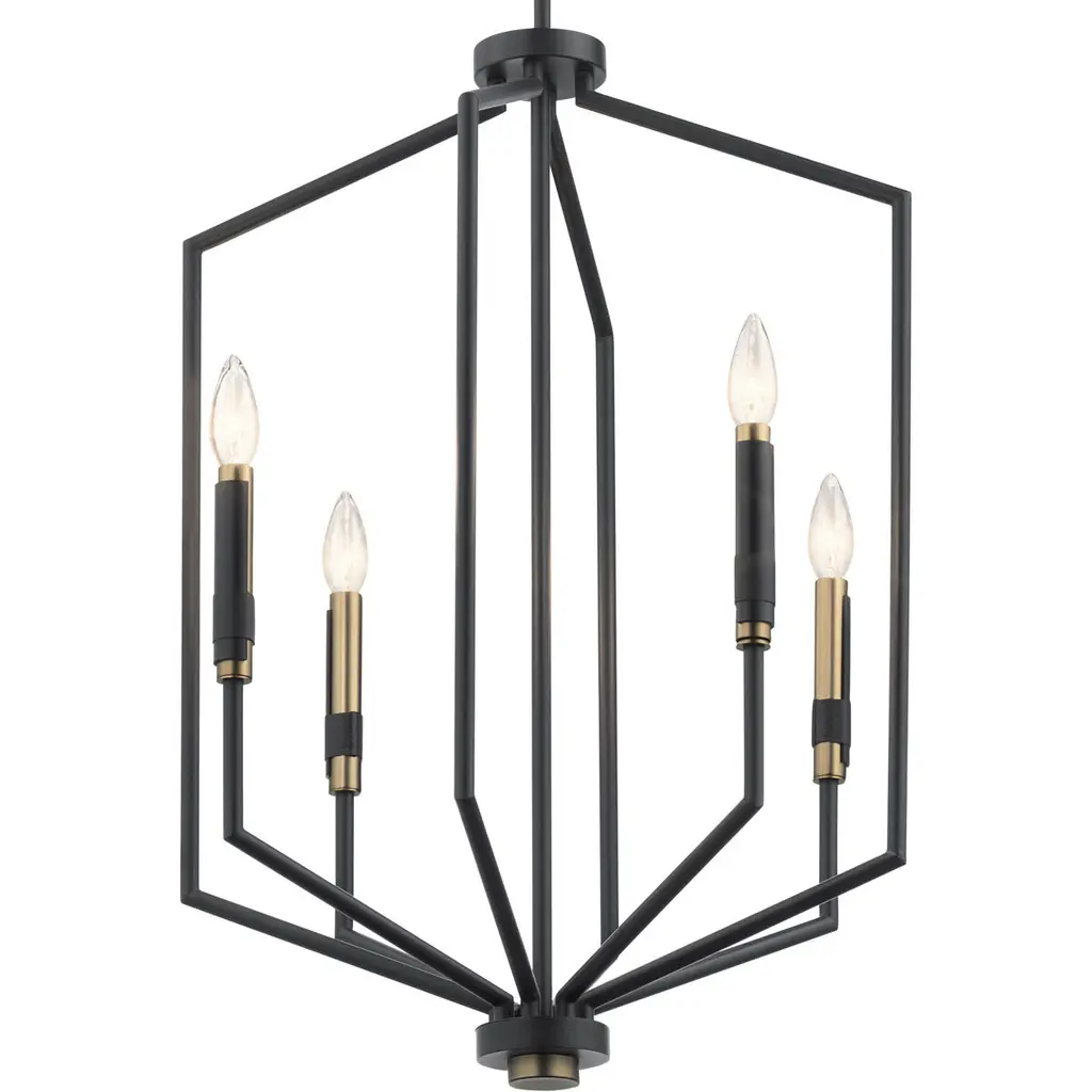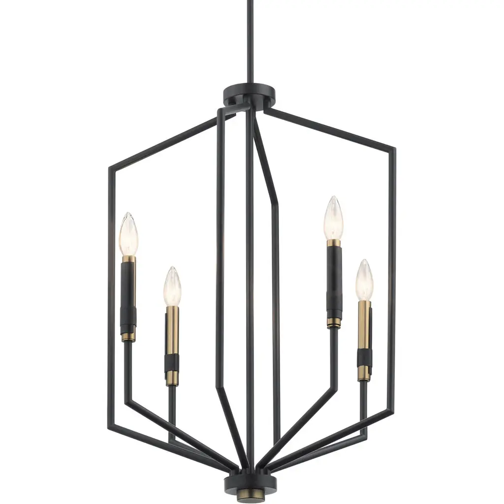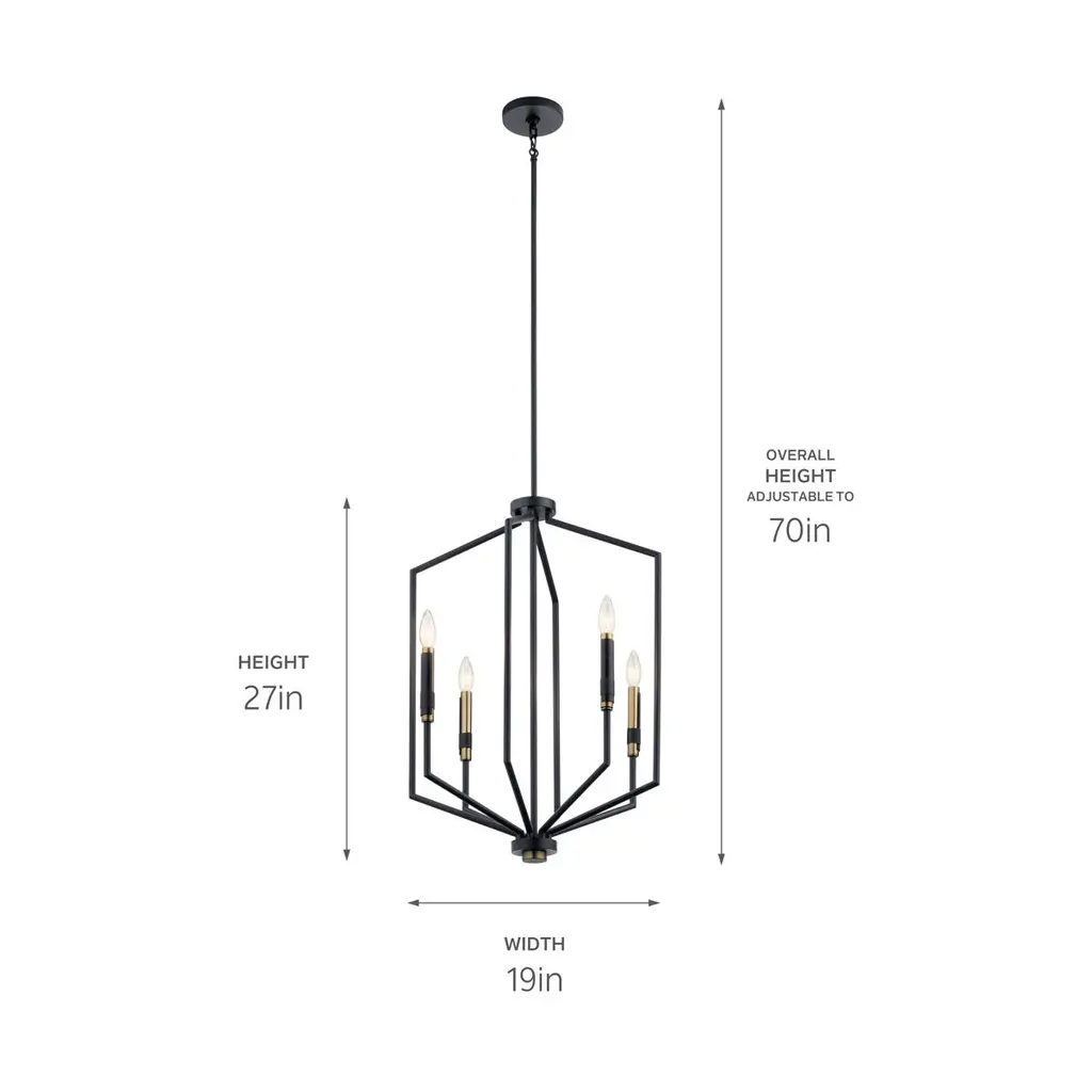 The Armand(TM) 27 inch 4 Light Foyer Pendant features mixed Black and Bronze finishes with touches of faux black leather wrapped around bronze candle sleeves. This simple and elegant pendant works perfectly in a variety of styles including soft contemporary, mid-century, glam, and refined industrial.