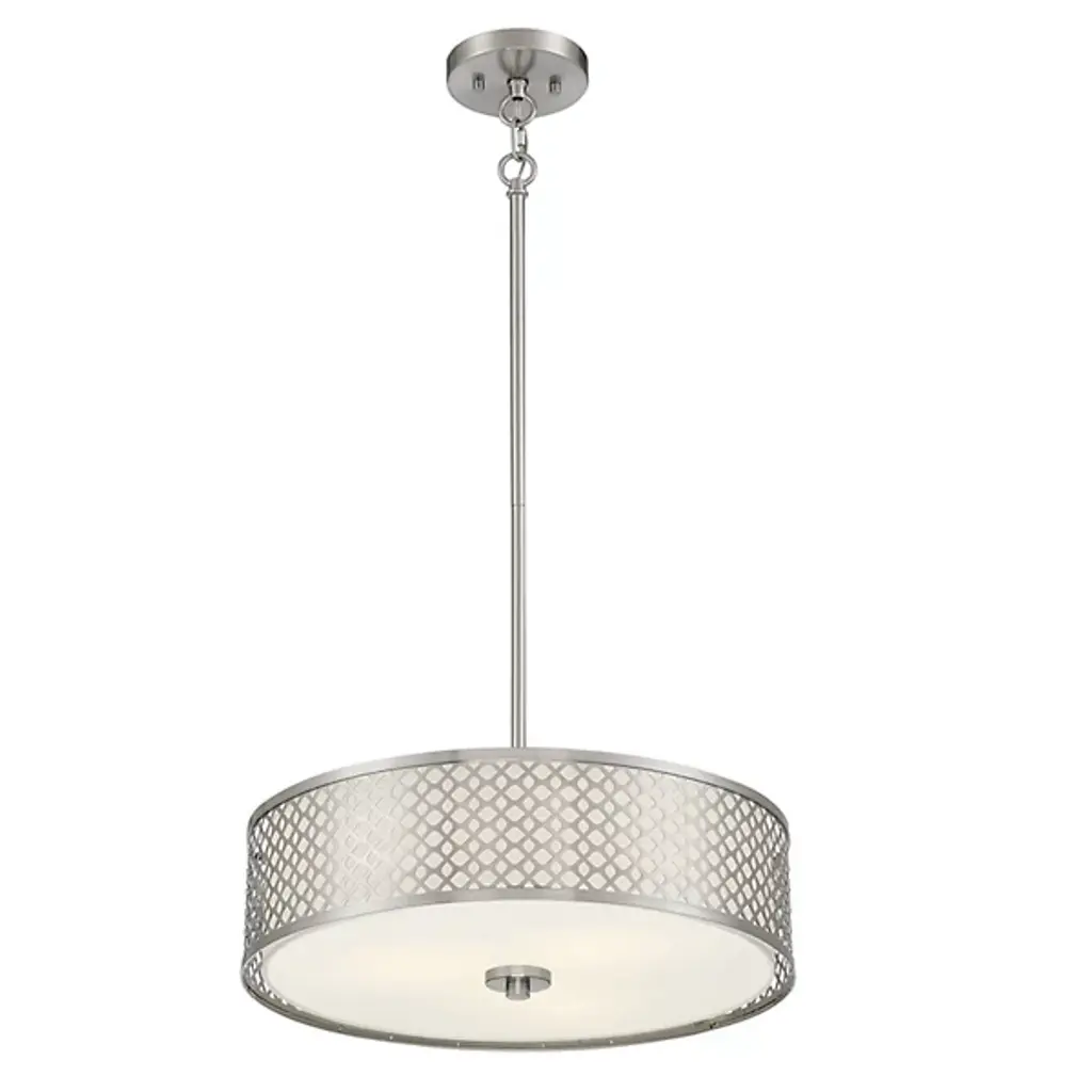 Simple yet seductive. Create a warm, pleasant atmosphere around your dining and kitchen areas with the Arnold Drum Pendant from Alder & Ore. A sleek downrod suspension and an ultra-compact canopy make this a great piece as a series or on its own. The pendant's precision-cut metal frame underlines its chic modern styling. A beautiful abstract pattern wraps across with shapes defined by the soft fabric of the shade behind it. When you turn it on, light mellows through the fabric shade, leaving you with a generous glow and a sophisticated silhouette.