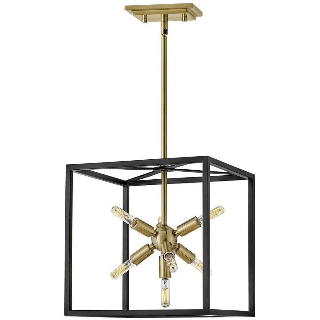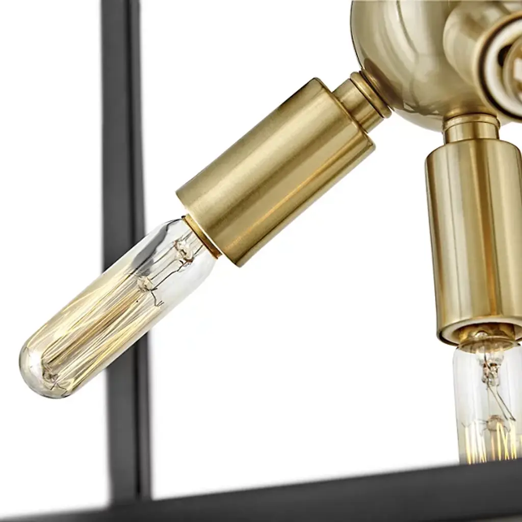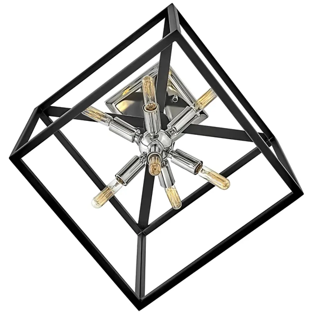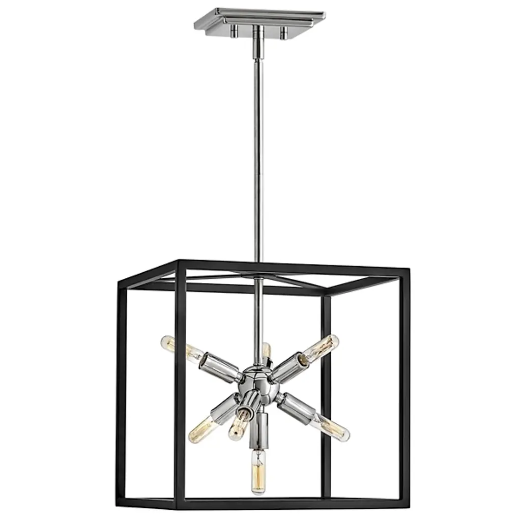 The Aros Semi Flusmount/Pendant from Hinkley Lighting is a sputnik-inspired design, adding to the openness of the room in its clean geometry. The piece puts a contemporary spin on the mid-century modern classic. Its retractable down rod lets it serve close to the ceiling or closer to eye level. Hanging below, a globe and short lamp holders delight in their shimmering finish. The exploding composition of the lamp holders awes from every viewing angle. A boxed structure gives the starburst design a sharp, framing display. Filamented bulbs add a vintage texture and golden hue to the piece. The multi-directional bulbs translate to a filling ambient aura.