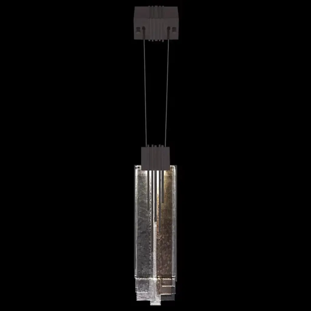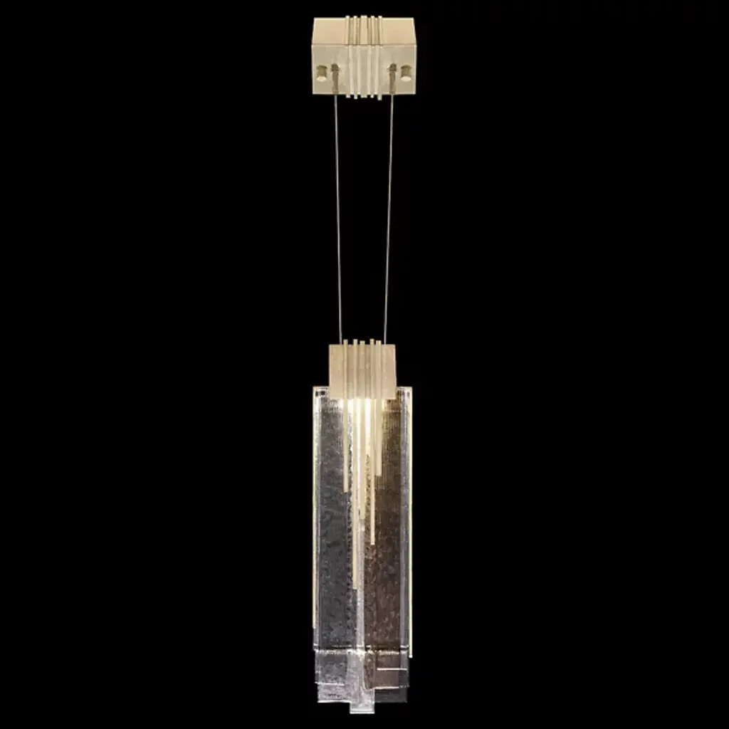 The Arpeggio LED Mini Pendant from Fine Art brings a sense of rhythm and refinement to interior lighting. Inspired by the flowing notes of jazz, this piece features a series of fused studio glass panels that descend in a staggered formation from a geometric canopy and block-style collar. Suspended by fine cables, the textured glass catches and diffuses LED illumination with graceful dimension. With a nod to Art Deco style, it adds sculptural flair and ambient warmth to any room.