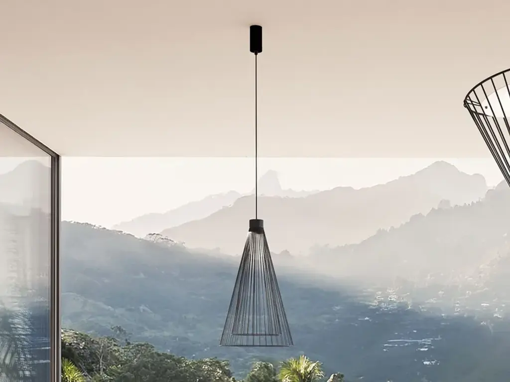 Bring a modern and elegant touch to your home with the Array Cone LED Pendant Light from Vibia. The unique design features delicate technical filaments between two rings, emitting a soft and warm indirect light that creates a beautiful color gradient in any room. Perfect highlighting a dining table or as a living room focal point, this eye-catching pendant brings sculptural beauty to any interior. Highlights