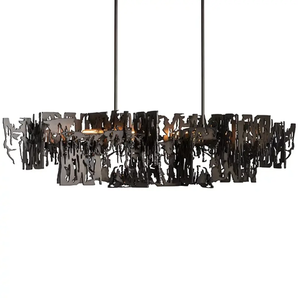 Brutus Pendant is a statement piece that will make a bold and aggressive statement in any space. The Brutalism movement of the '60s and '70s is revisited with this pendant design. Welded layers of steel are combined to create a unique, one-of-a-kind lighting fixture. Part of ART + ALCHEMY by Hubbardton Forge.