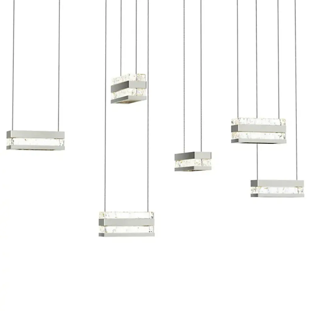 Make a statement in any room with the one-of-a-kind Stacks 6-Light Pendant from ART + ALCHEMY by Hubbardton Forge. The thick, clear, hand-poured blocks of glass ooze elegance, while the billet aluminum is foundational to the style of this light. The conductive LED cables pierce through the glass and aluminum stacks, providing a unique light element to its space. Stacks Pendant brings a minimalist, architectural aesthetic to your home.
