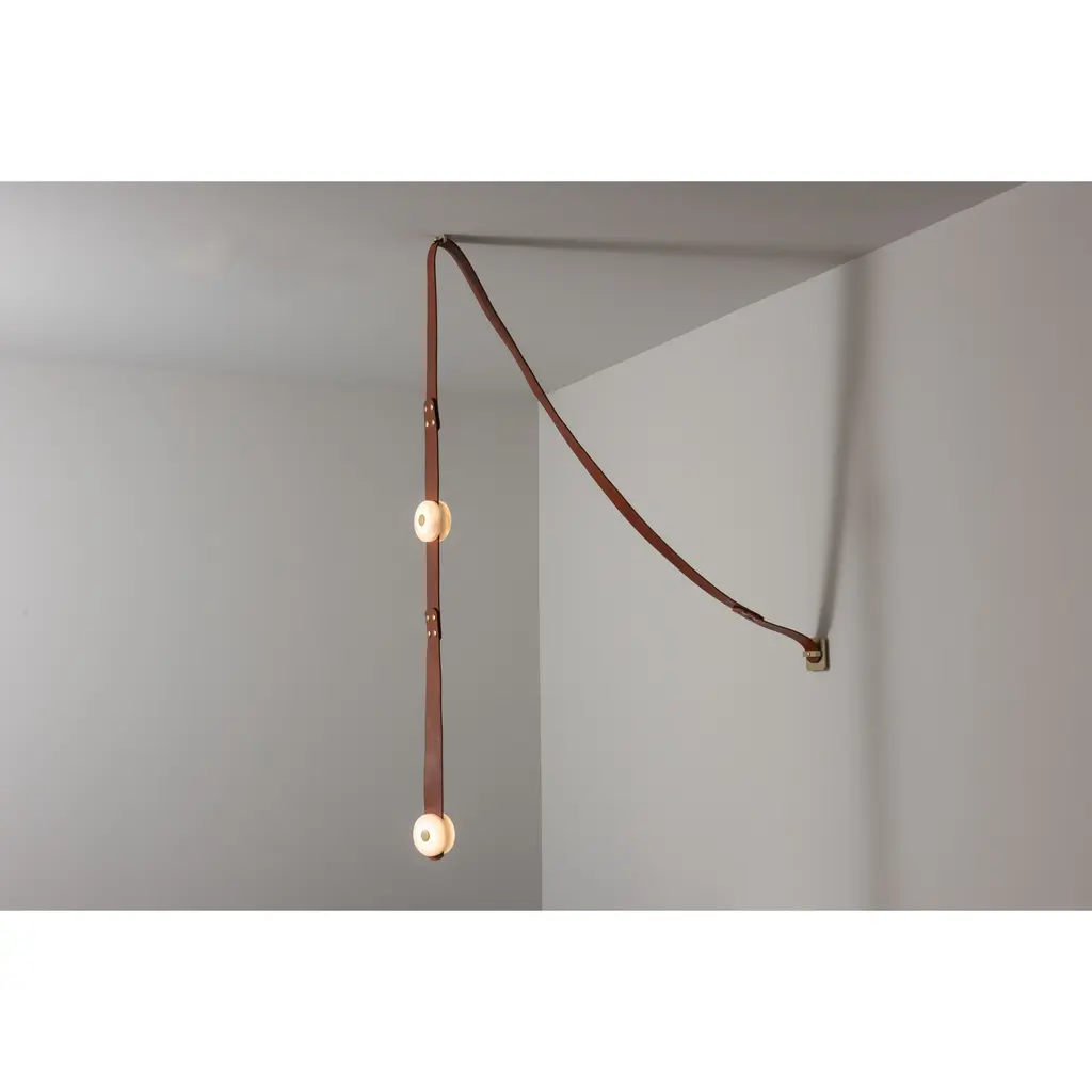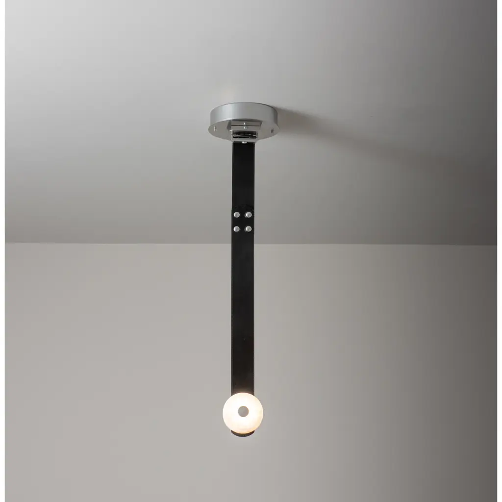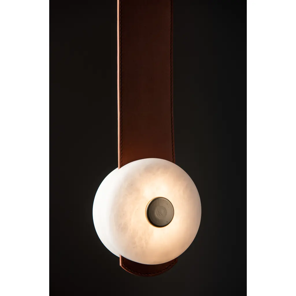 The SNAPS Small LED Pendant designed by HF's Andy Morter features a single alabaster stone-LED element on a long strap, with an additional, shorter fine-grain leather extension strap. An integrated "mini mount" allows a remote driver installation for a minimal wall mount appearance. Part of the ART + ALCHEMY by Hubbardton Forge Collection. Unleash your creativity by ordering one of these extension pieces: 905700, 905701, 905712, 905713