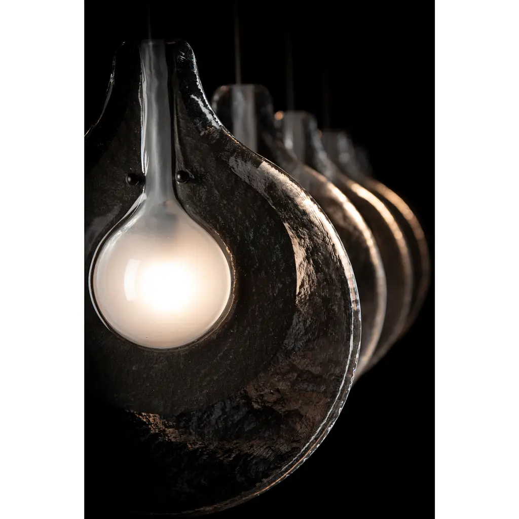 Stunning." "Surprising." "Exquisite." We hear the new Veneto Collection described with excitement for its beautifully handcrafted Venetian glass. Look closely. The textured glass encases both the metal+bulb elements, with a central frosted glass in the bulb area. Part of the ART + ALCHEMY by Hubbardton Forge Collection, this linear Veneto pendant, by HF designer Jason Hancock, features five lights to dramatic effect.