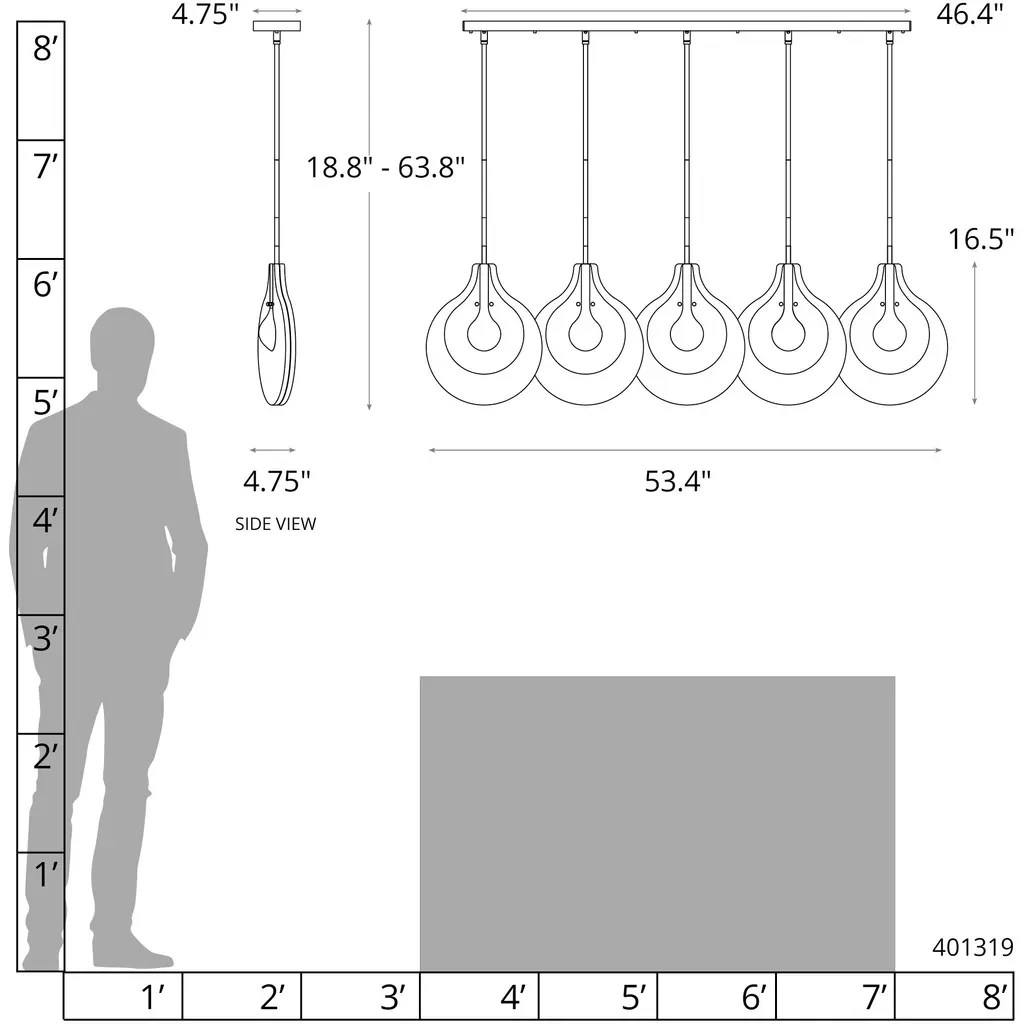 Art & Alchemy Veneto 5 Light 53.4 Inch Vintage Platinum Linear Pendant Ceiling Light