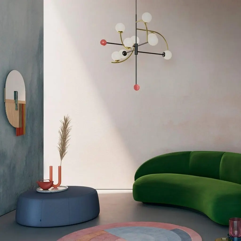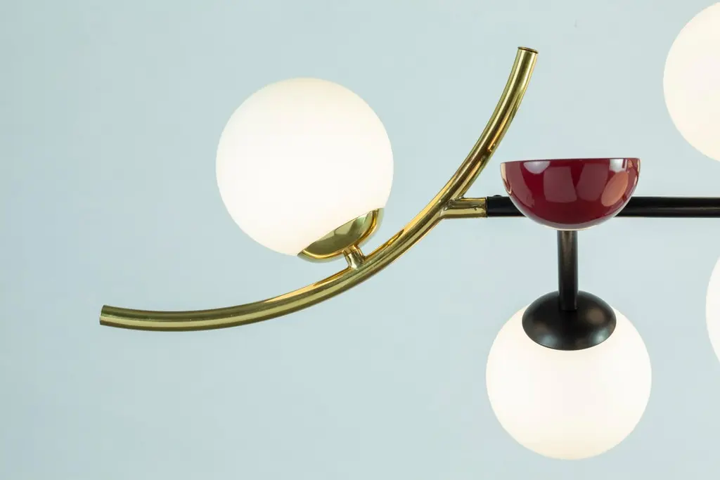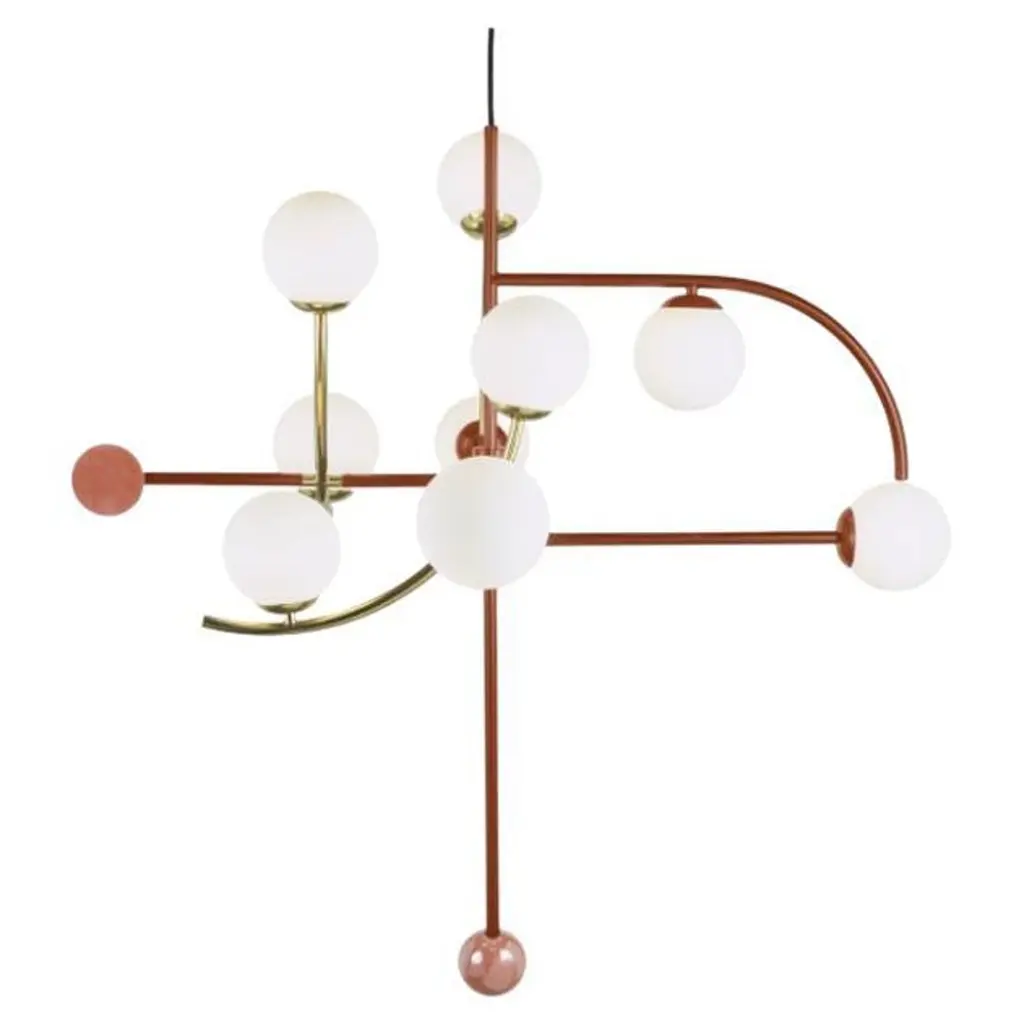Art-Deco Inspired Brass, Black And Red Helio I Pendant Lamp By Utu