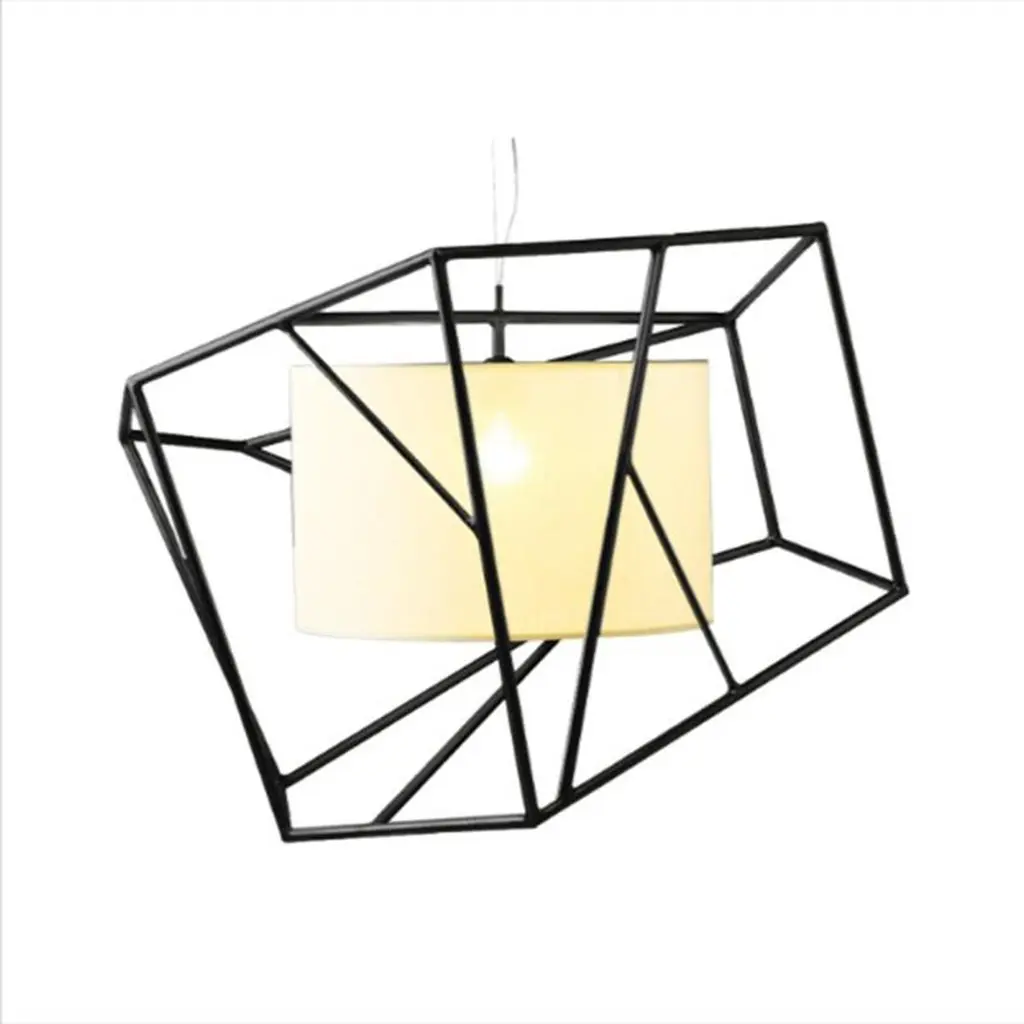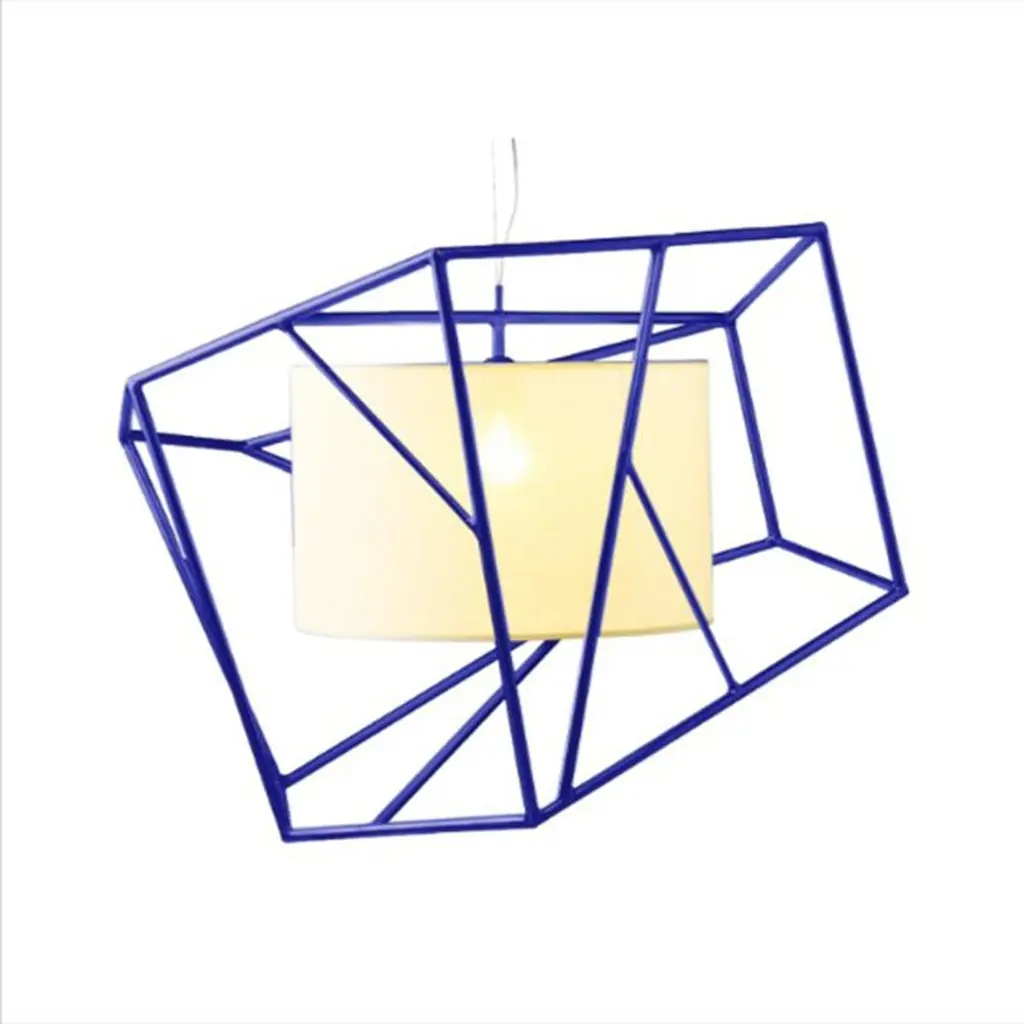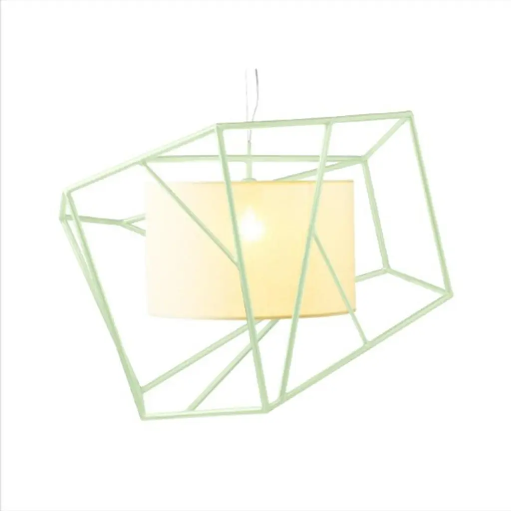 Art Deco Inspired Star Pendant Lamp Powder Coated Jade Blue With Linen Shade