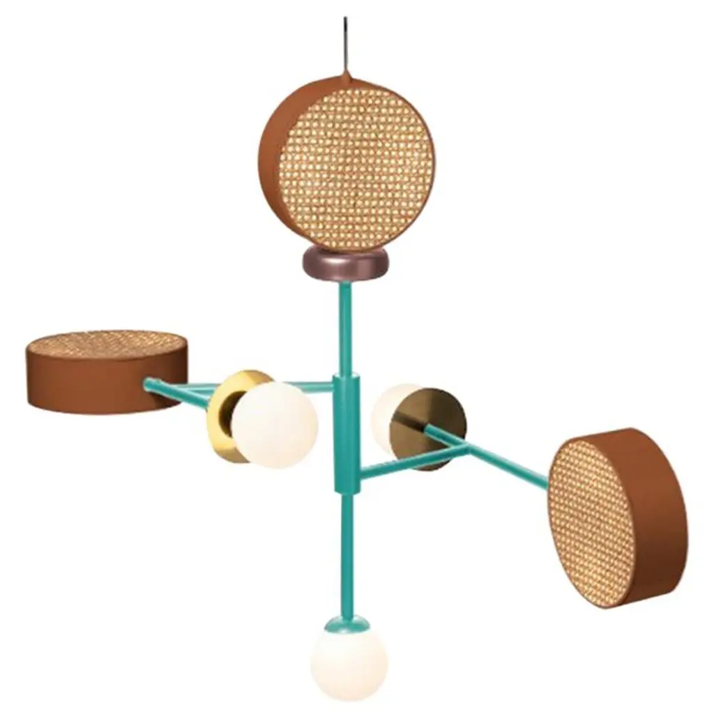Monaco is a perfect suspension of round shapes, rattan mesh, wooden detail and brass details intertwined with delicate and frosted glass globes. The structure and the cylinders are finished in a smooth, homogeneous powder coating layer. The brass details are carefully polished or satin. The wooden detail is lacquered.Monaco pendant is available in other finishes, check images in this listing.Made to order and color customizable. Utu Lamps is part of the Mambo Unlimited Ideas design group from Portugal.Utu’s contemporary aesthetic results in original top-quality luminaries with international inspiration while rooted in the local knowledge.Each product is handmade in Portugal by our craftsman using time-honored techniques honed over centuries. Materials are thoughtfully combined and carefully finished.