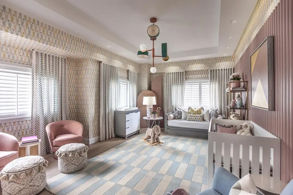 Art Deco Pendant Lamp Monaco In Black, Taupe, Old Pink, Brass And Rattan