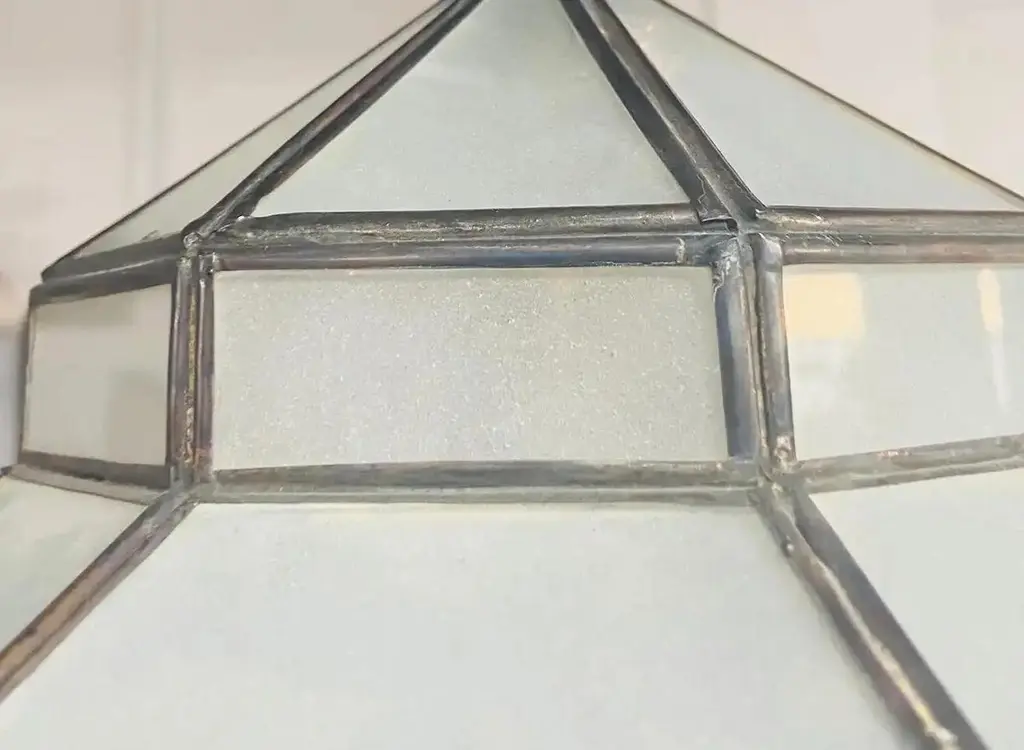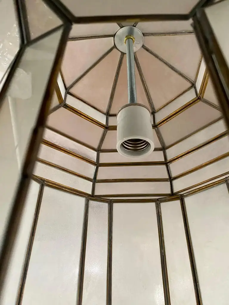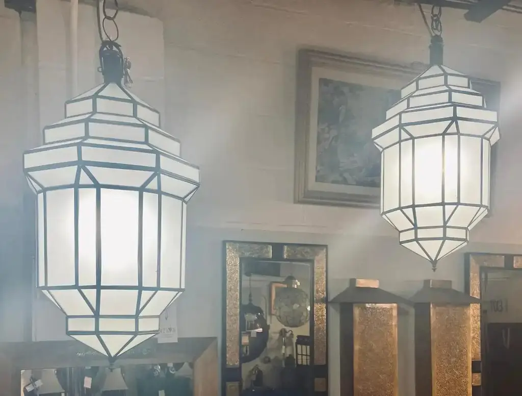 Art Deco Style White Milk Glass Handmade Chandelier, Pendant, Lantern, A Pair