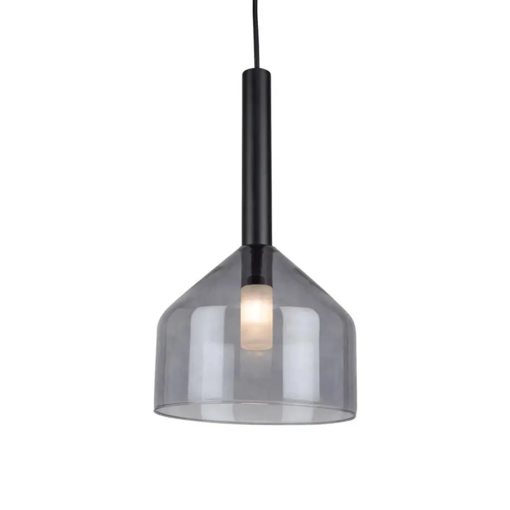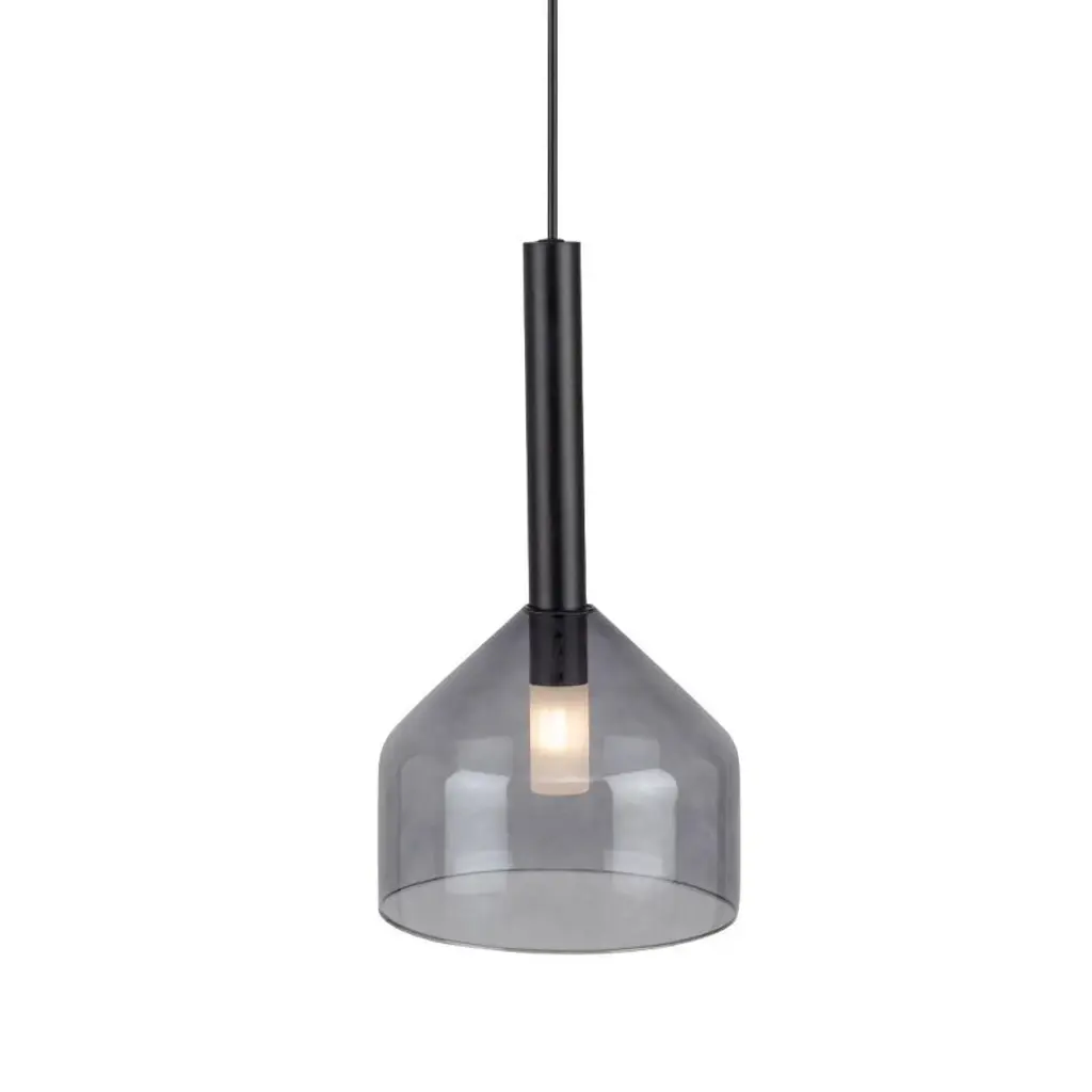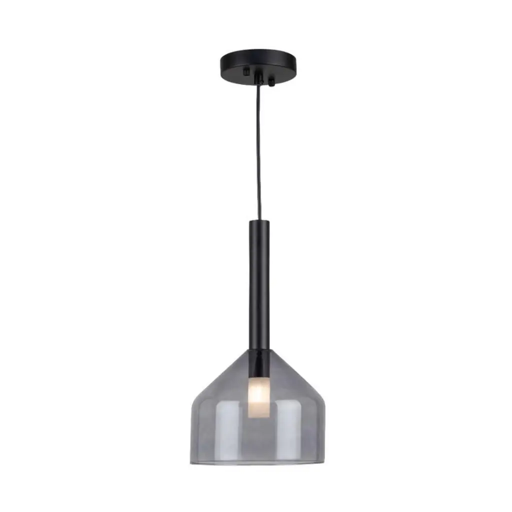 The Kali collection showcases a captivating design, featuring lightly smoked glassware suspended with sleek black wiring. Each glass element has an interior white bulb cover, adding a touch of subtlety to the lighting and creating a soft, ambient glow. Single light pendant shown. Black finish / Dimmable / 1 x G9 bulb base required (bulb not included) / ETL listed / Limited lifetime warranty / Sloped ceiling compatible / Room location: dining room. ,