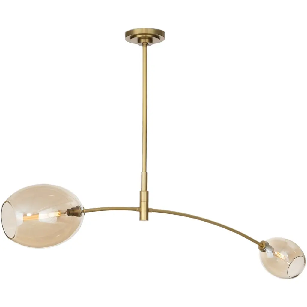 The Artemis Double Pendant masterfully balances simplicity with artisanal craftsmanship, featuring elegantly positioned glass globes at each end of its mobile-inspired, arched arm. This striking fixture exudes a modern vibe, making it a standout addition to any space.