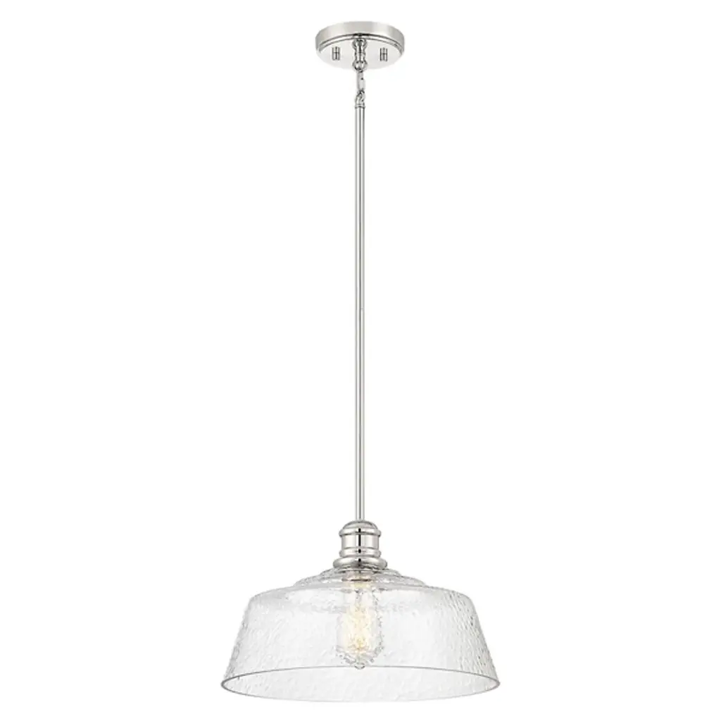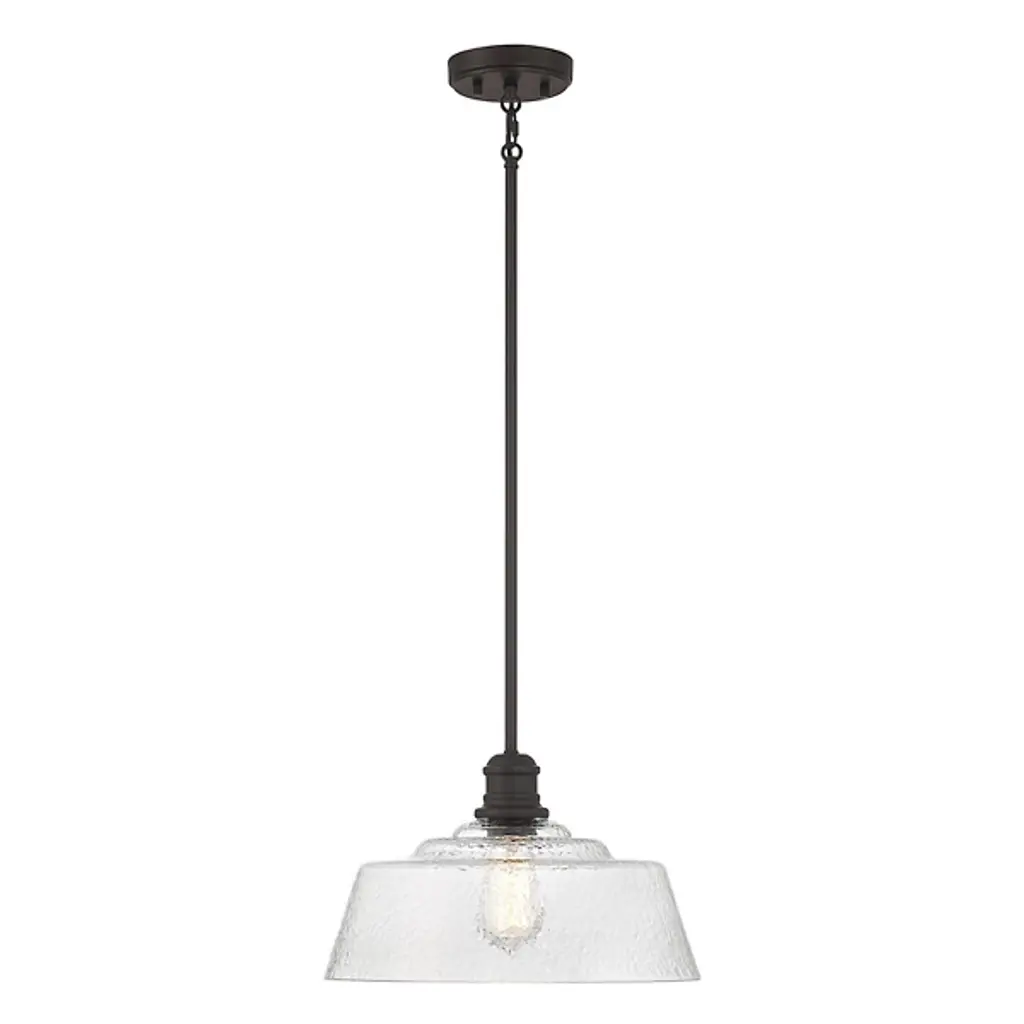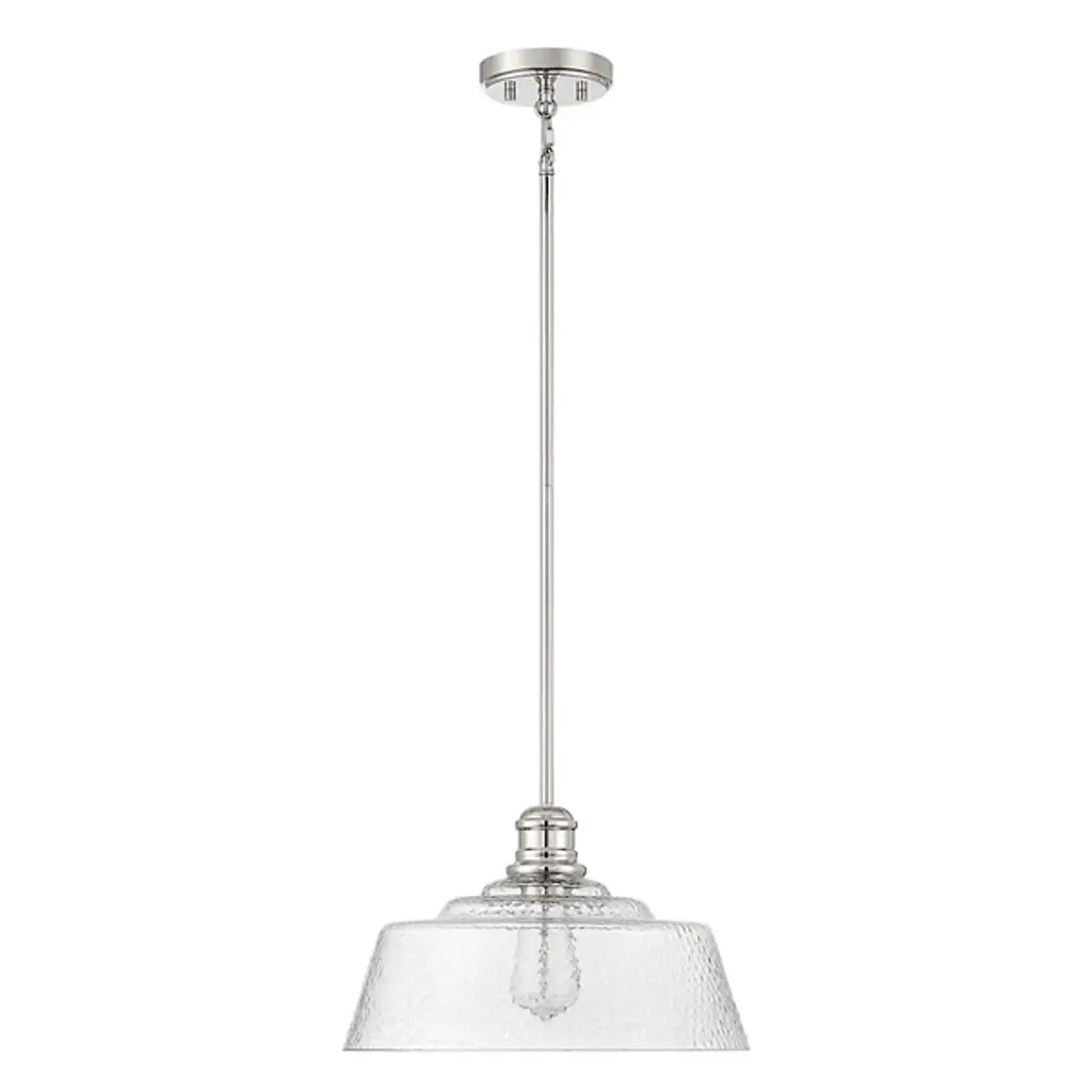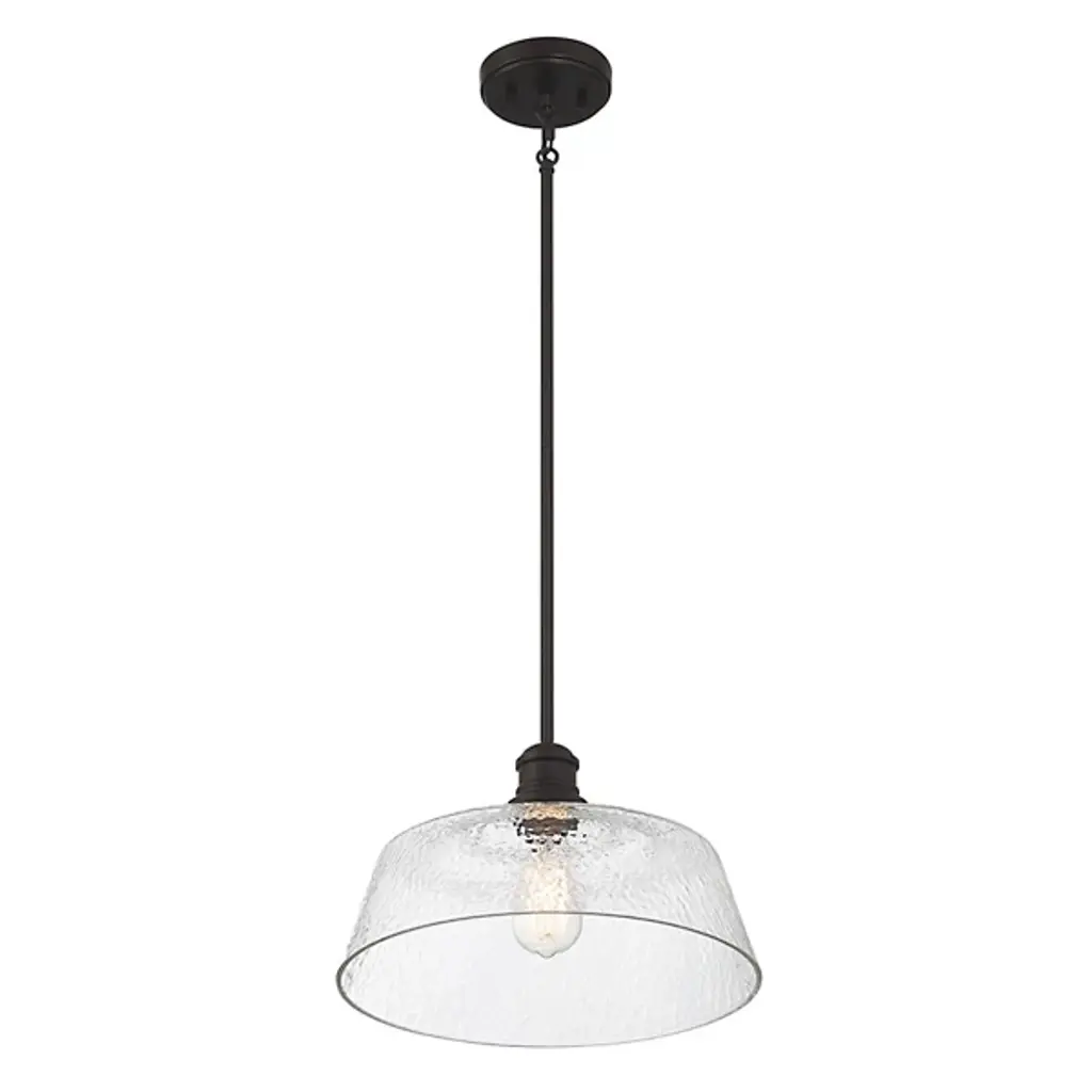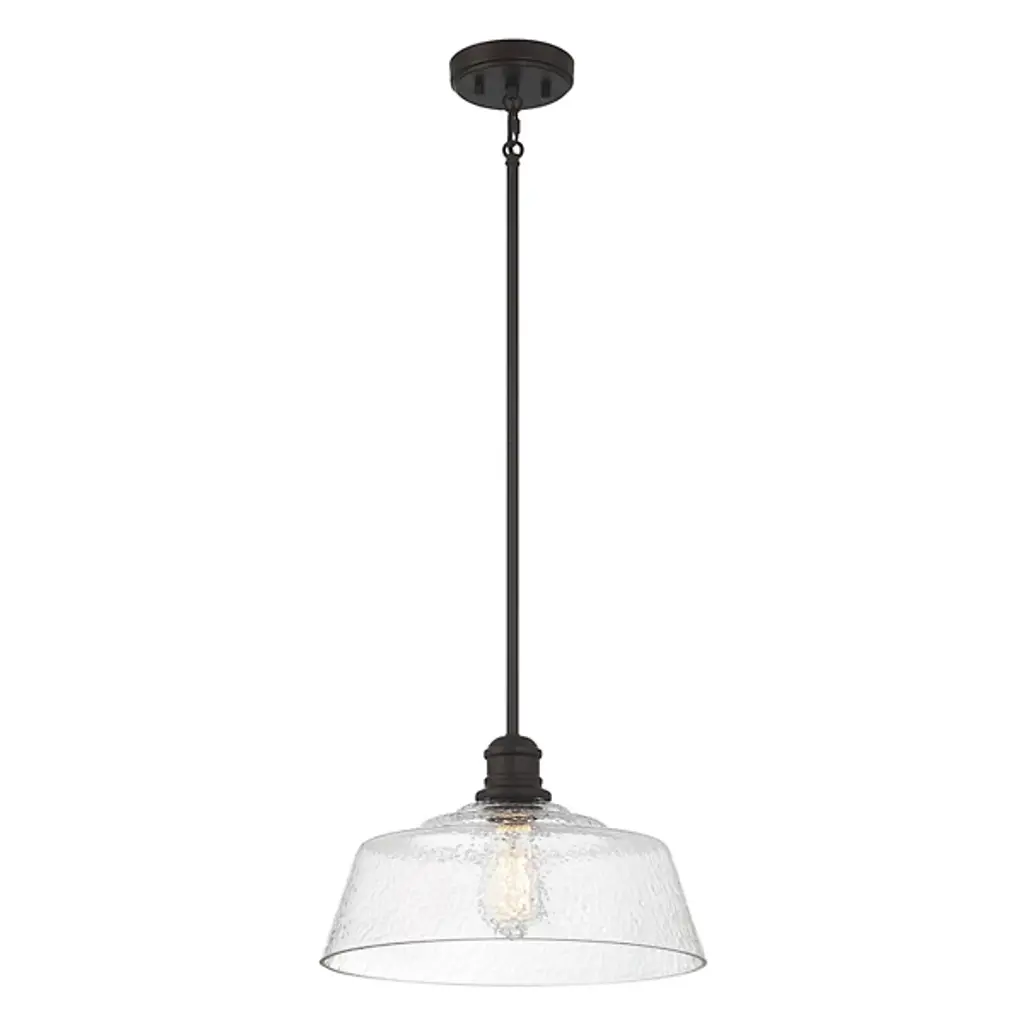 The Arthur Pendant from Alder & Ore is a transitional light fixture that brings visual interest to your space. It features a charming, intricately textured glass shade crowned with metal, which supports a brightly illuminated LED, allowing light to emanate from above. The pendant is secured by a downrod attached to a ceiling canopy, offering balance and stability. The subtle, rippled presentation at the top of the shade adds the final touch.