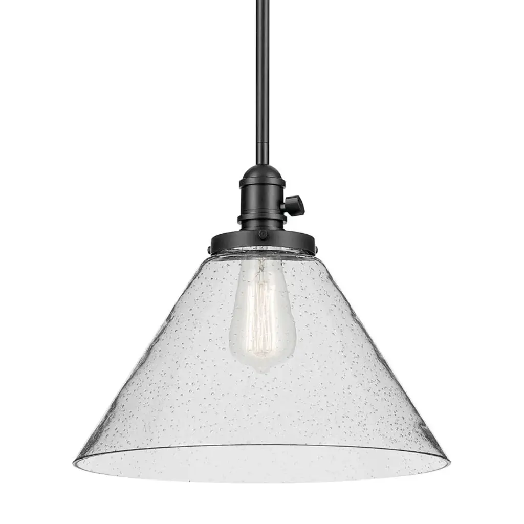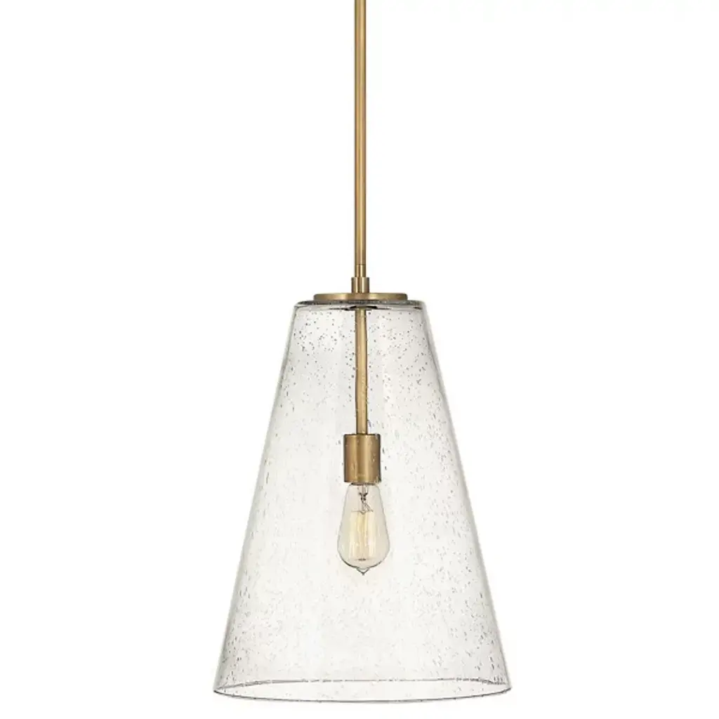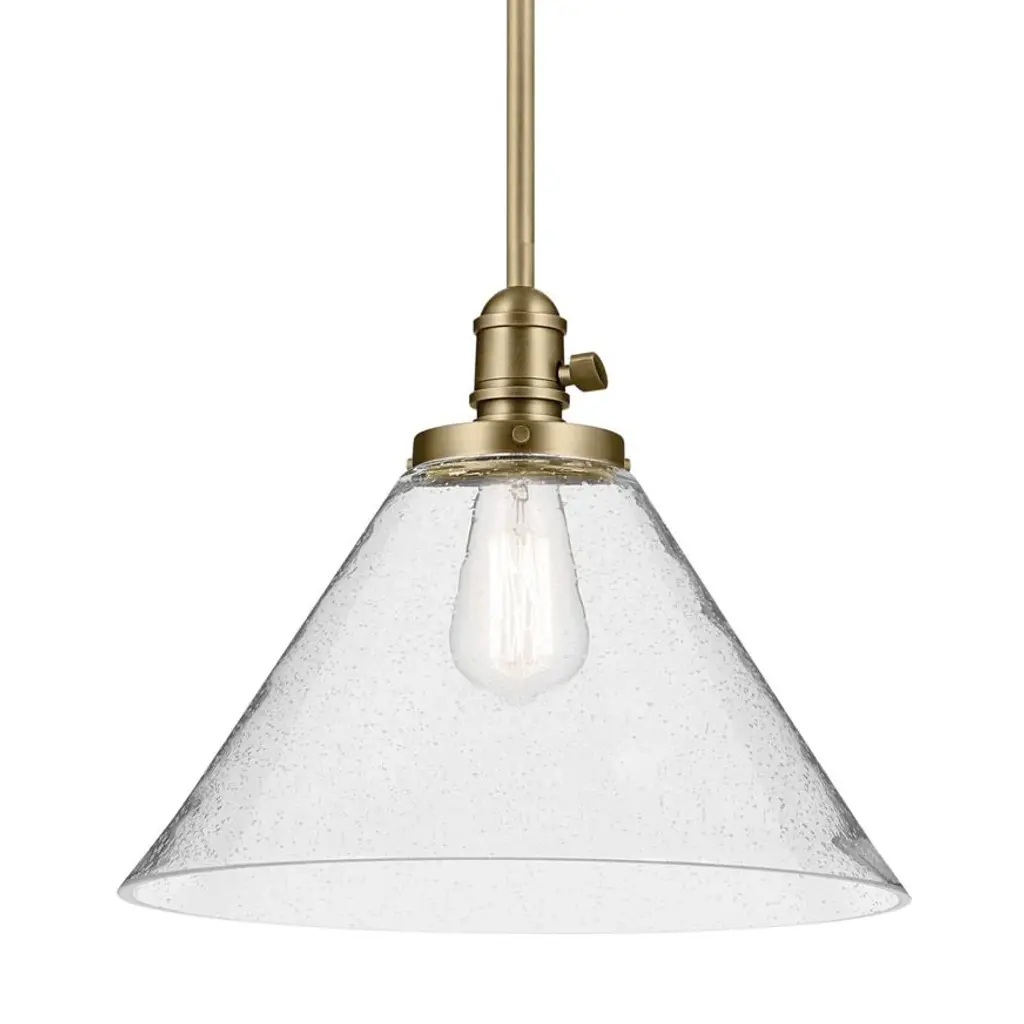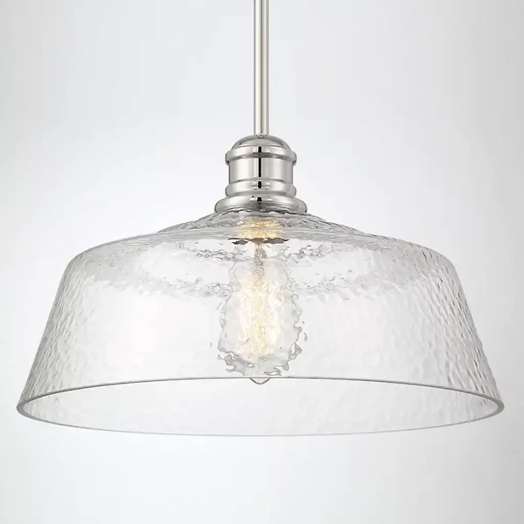 The Arthur Pendant from Alder & Ore is a transitional light fixture that brings visual interest to your space. It features a charming, intricately textured glass shade crowned with metal, which supports a brightly illuminated LED, allowing light to emanate from above. The pendant is secured by a downrod attached to a ceiling canopy, offering balance and stability. The subtle, rippled presentation at the top of the shade adds the final touch.