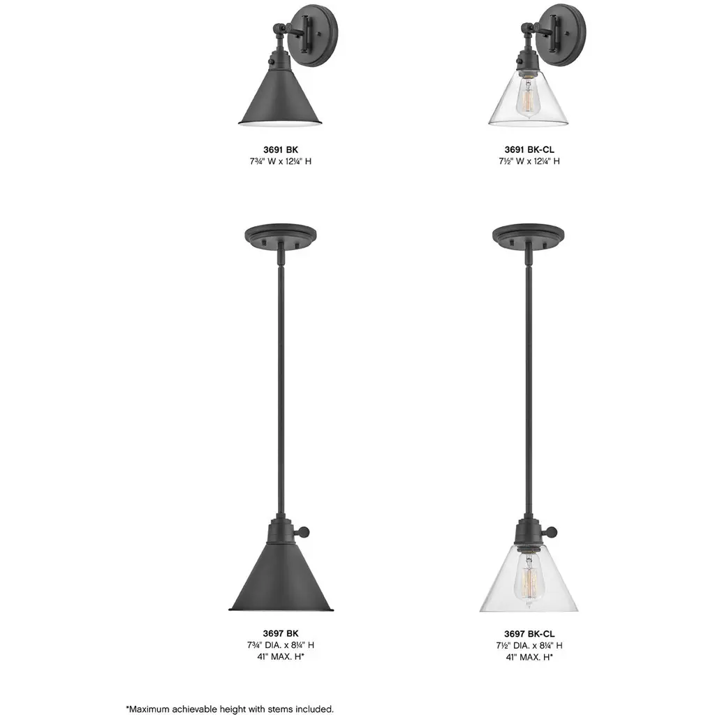 Arti 1 Light 7.5 Inch Black Indoor Pendant Ceiling Light In Clear