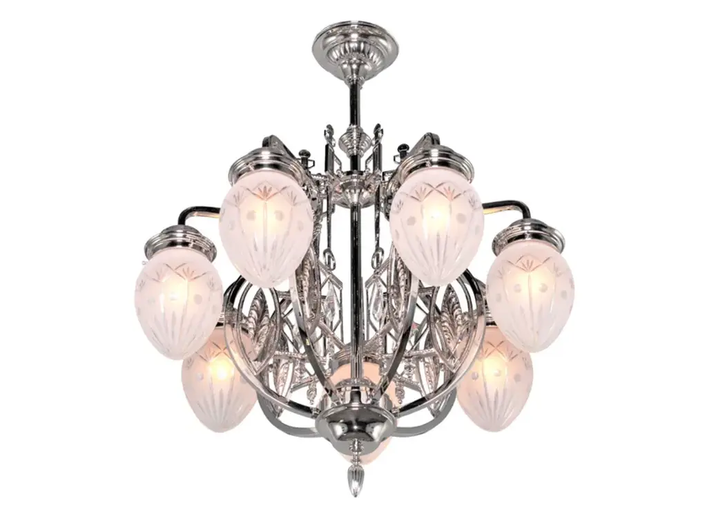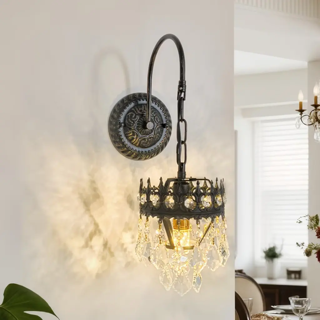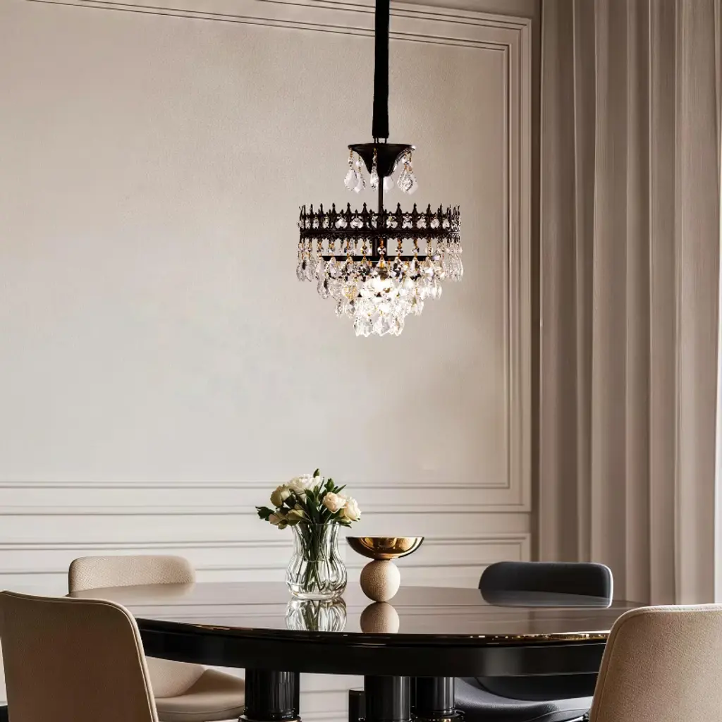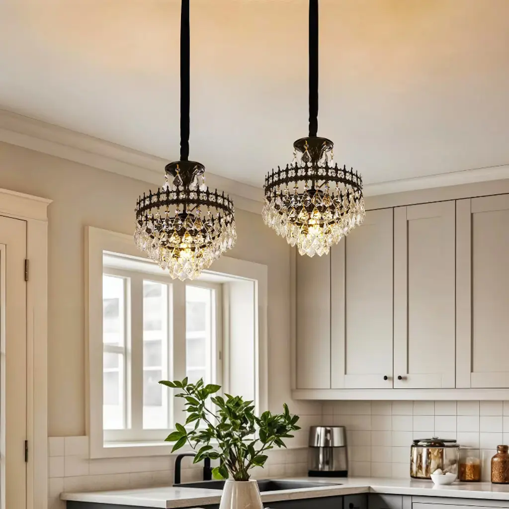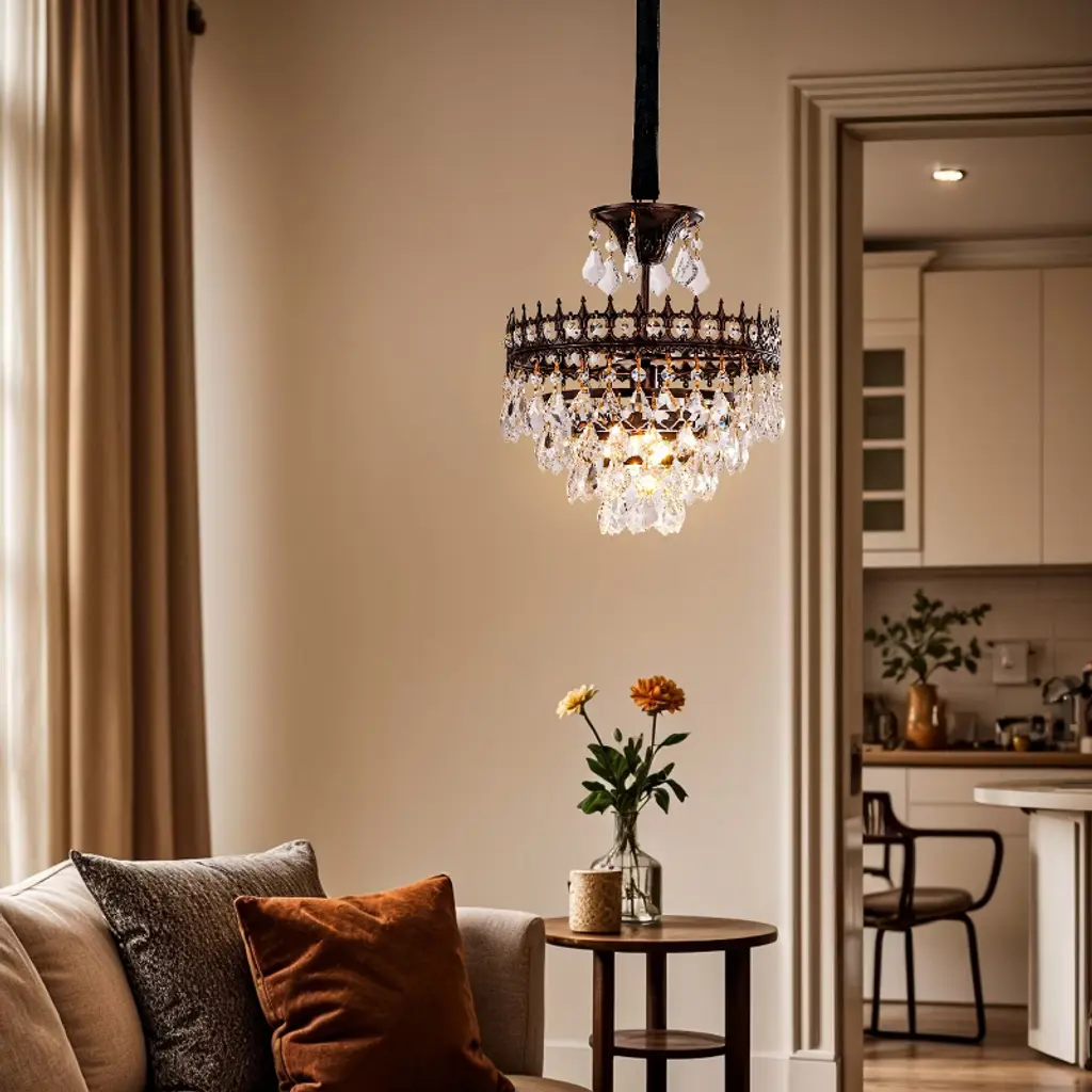 This chandelier features a meticulously hand-forged wrought iron frame, adorned with layers of precision-cut crystals that reflect the lights in dazzling brilliance. Comes with LED corn bulbs that emit three colors illumination, filling your space with a welcoming glow. Whether you're enjoying a family dinner or welcoming guests into your home, it adds sophistication and comfort in equal measure.