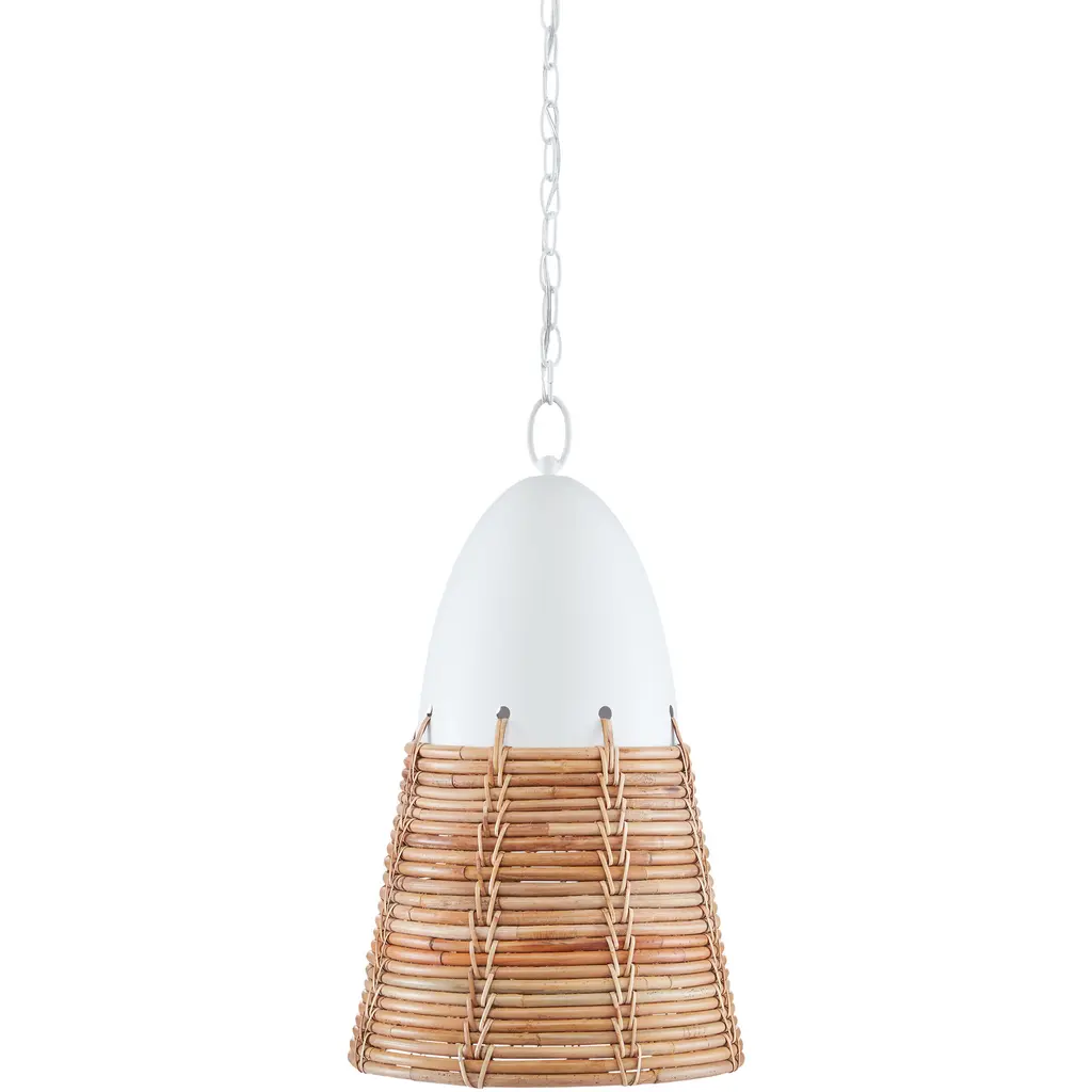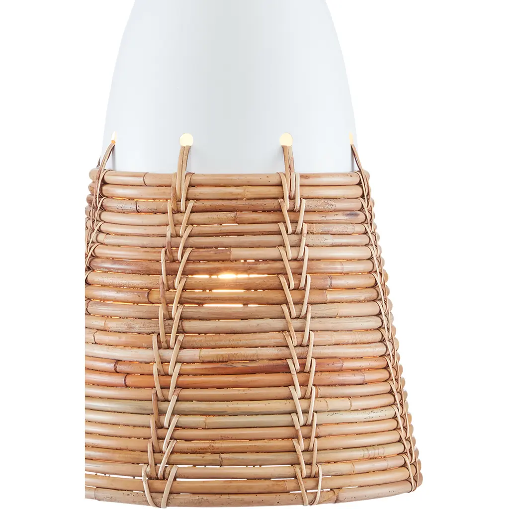 Arundo 1 Light 13.75 Inch Gesso White/natural Rattan Pendant Ceiling Light