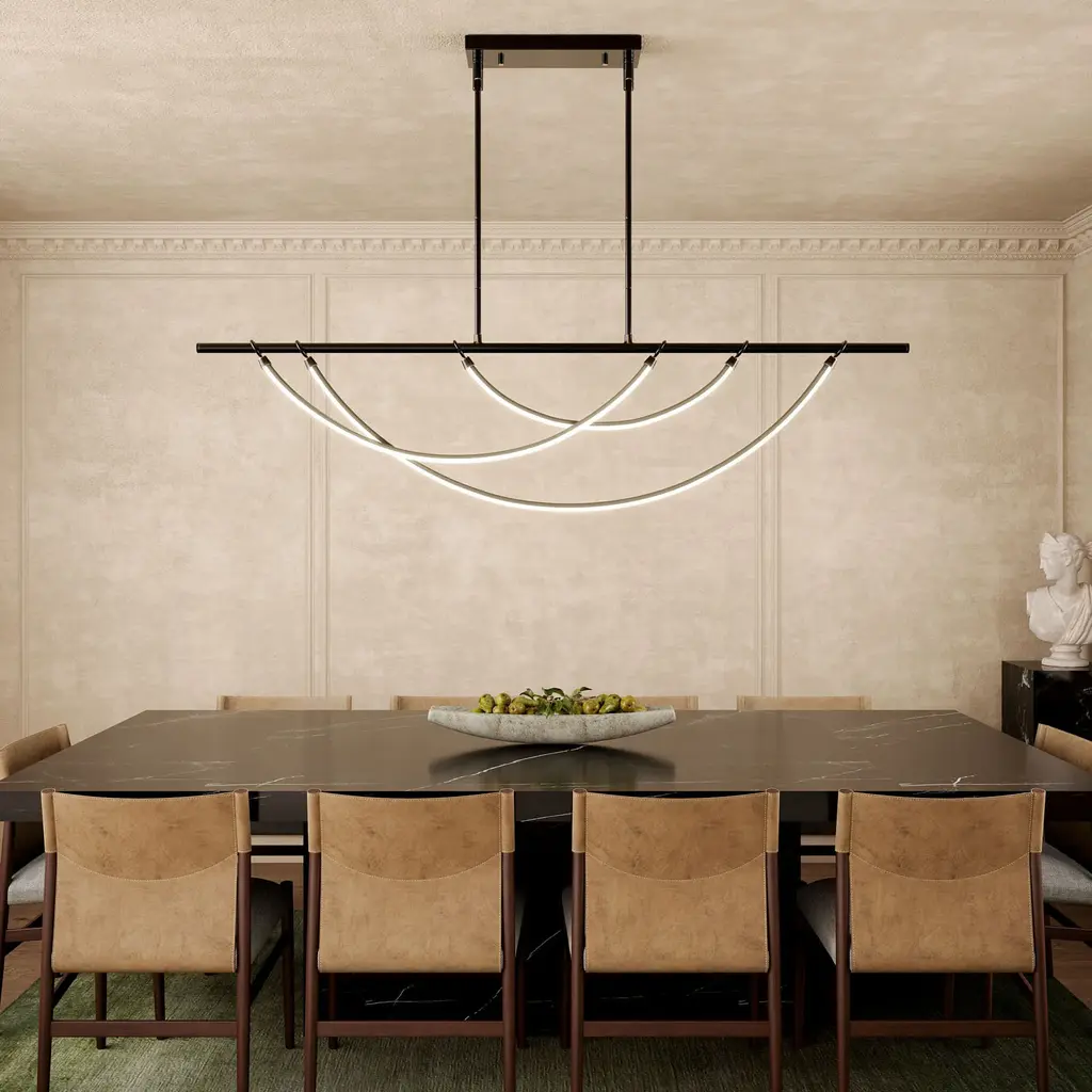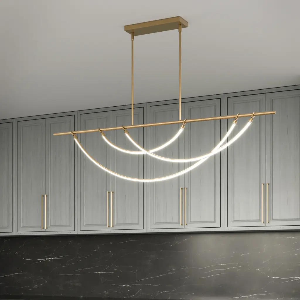 Turn your space into a luxurious, exclusive space with the Aryas LED Linear Pendant Light from Alora. Inspired by haute couture jewelry, this light features three layers of glowing illumination on a vintage brass frame, which can be adjusted to suit your style. A true conversation starter, just like your favorite piece of statement jewelry, this pendant is ready to elevate any dining room, kitchen island countertop, or chic bar space. Highlights