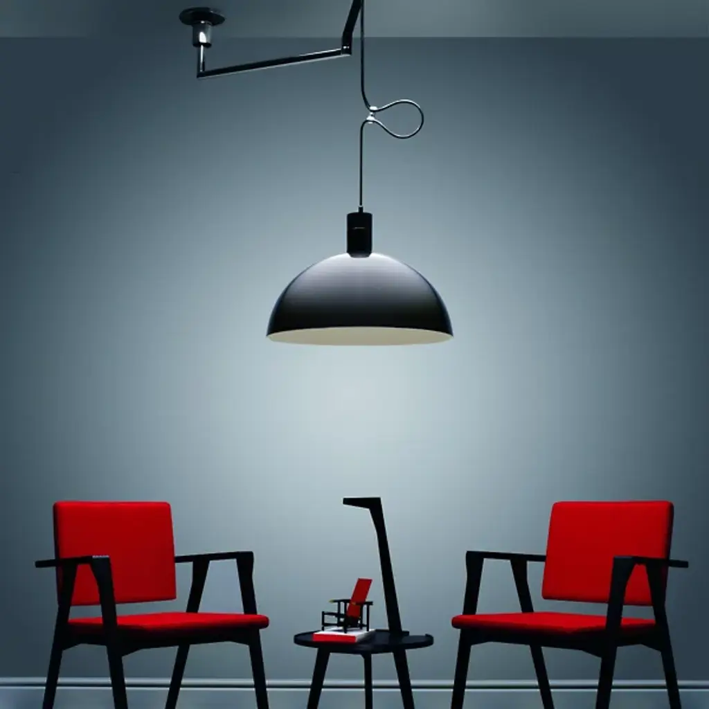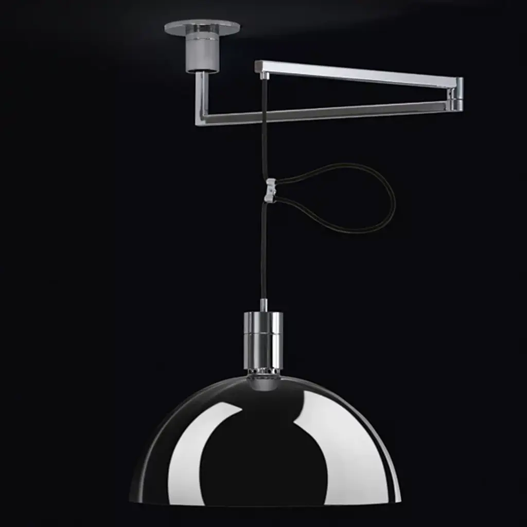 Drenched in chrome, the Nemo Franco Albini AS41Z Pendant will add a glossy, gleaming element to contemporary decor. Like the AS41C Pendant, the AS41Z features a distinctive jointed arm that revolves horizontally to bring the dome-shaped shade's wide wash of downlight precisely where it's needed. Designed in 1969 by Franco Albini and associates.