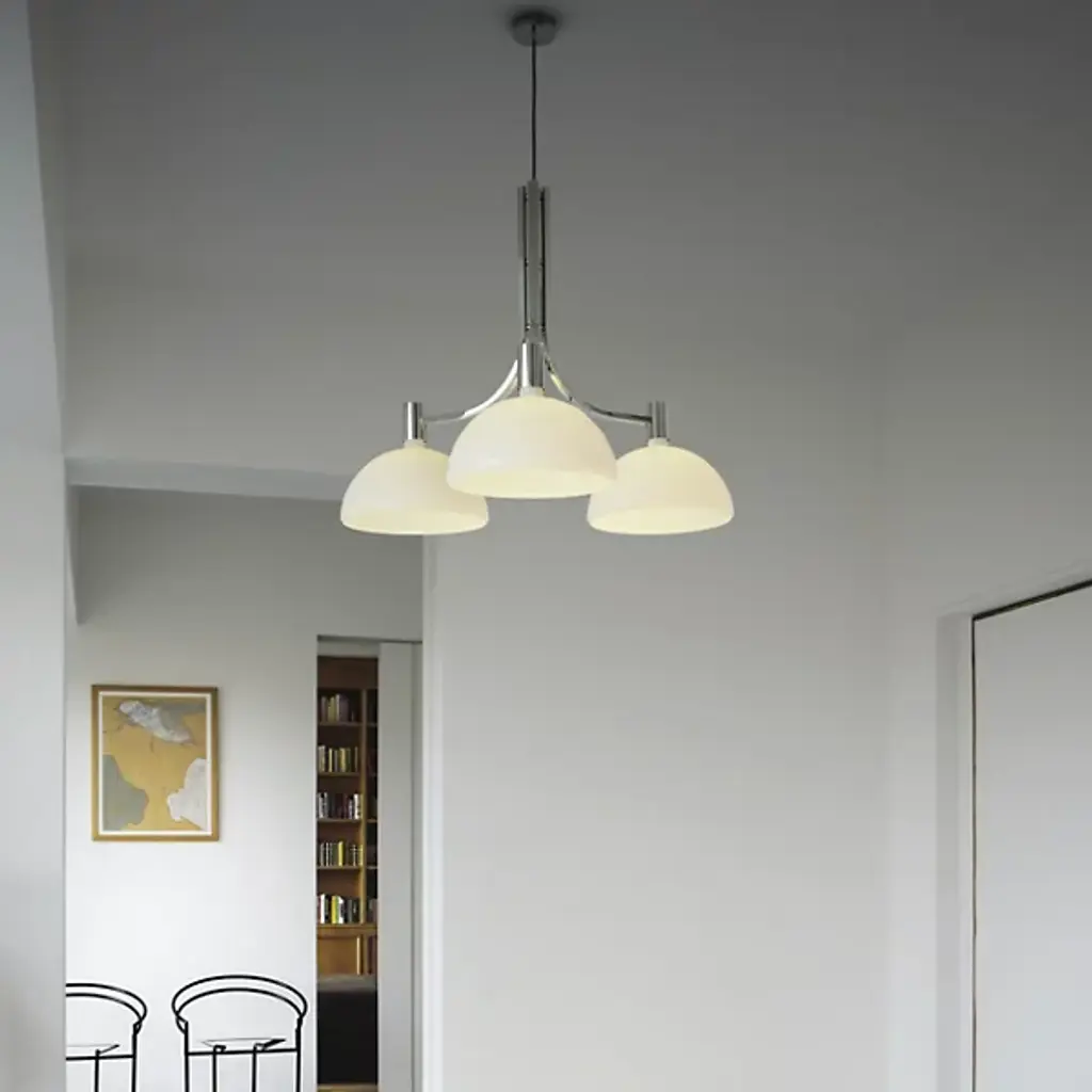 The AS43C Pendant from Nemo presents Franco Albini’s rationalist design ethos with clean lines, smooth curves, and refined materials. Its body features a trio of hand-blown glass shades that hang down from gently curved metal arms and a narrow central body. Each shade contains its own lamping, offering a healthy glow of ambient light once lit. As a harmonious blend of thoughtful craftsmanship and timeless modernist principles, this pendant stands out as a sophisticated centerpiece, ideal for living spaces and dining tables alike.