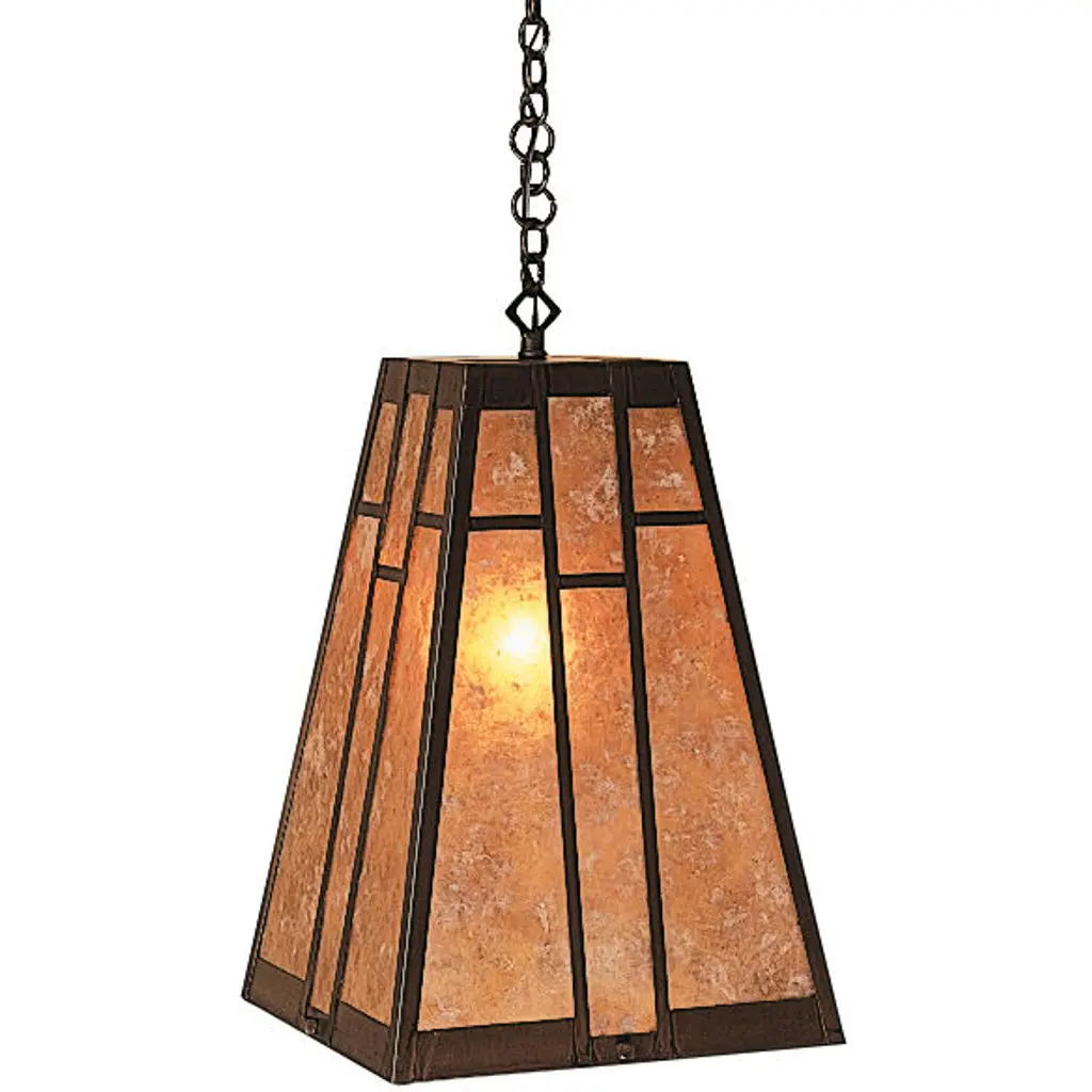 Its flared shade features the handsome, hand-crafted beauty of brass metalwork, expertly finished with an organic hue of your choice. The Arroyo Craftsman Asheville Pendant incorporates handmade sheets of glass, also offered in a variety of styles, through which warm incandescent light shines.