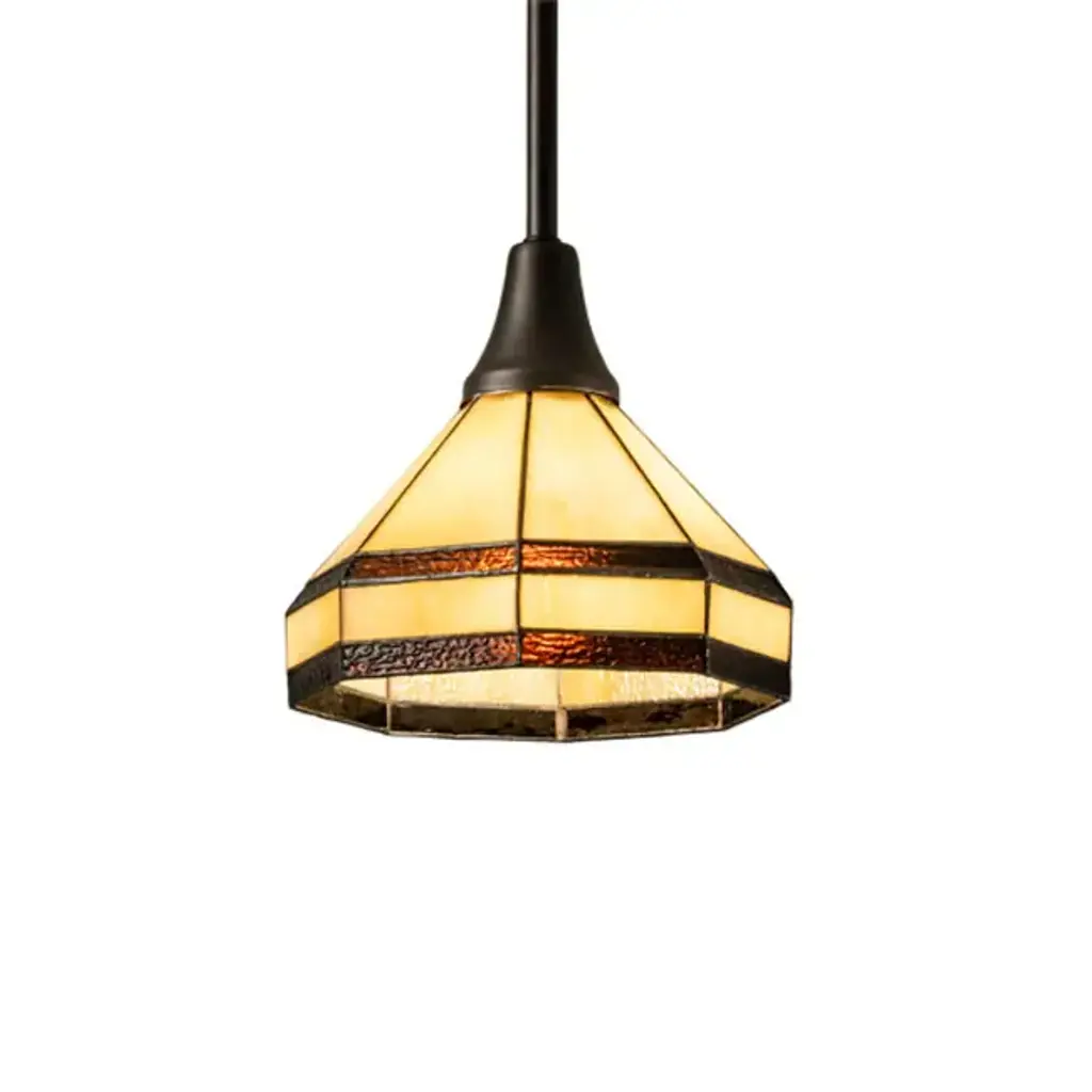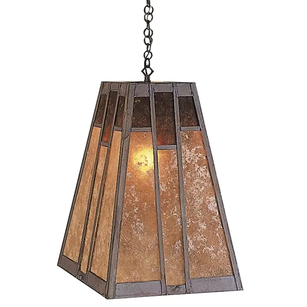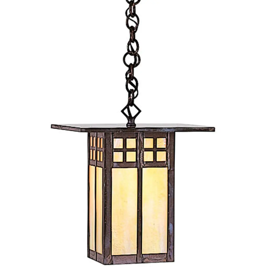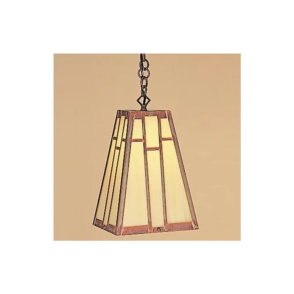 Its flared shade features the handsome, hand-crafted beauty of brass metalwork, expertly finished with an organic hue of your choice. The Arroyo Craftsman Asheville Pendant incorporates handmade sheets of glass, also offered in a variety of styles, through which warm incandescent light shines.