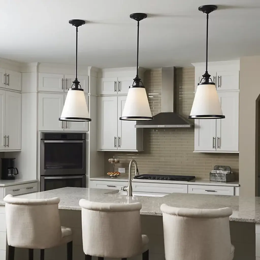 With its clean, tapered design, the Ashmont Pendant by Savoy House brightens your living space whether lit or unlit. The shade is comprised of White Opal glass that is lined with finished-metal trimming. Once lit, an internal light source glows through the glass, reflecting off the metal as it radiates into the surrounding space.