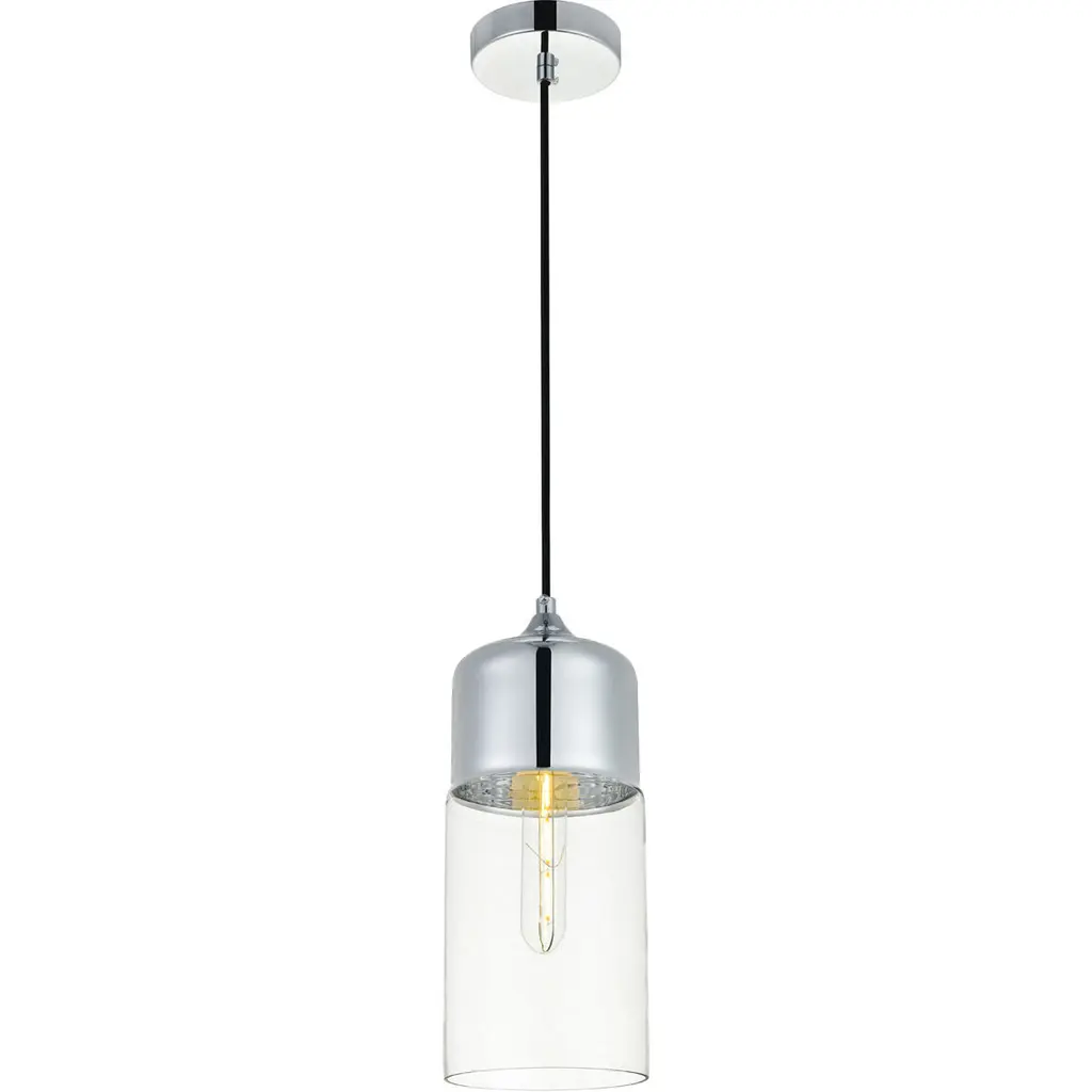 The perfect marriage of vintage charm and modern refinement, Ashwell pendant lamps blend well with décor from both Old World and New. A rounded iron frame in a chrome finish comes with adjustable black hanging cord. The narrow cylindrical clear glass shade envelopes an E26 tubular filament bulb (not included) to complete the overall look. Ideal for a breakfast nook, kitchen, office, or studio.